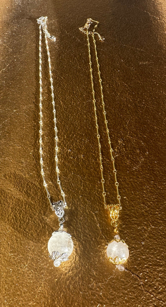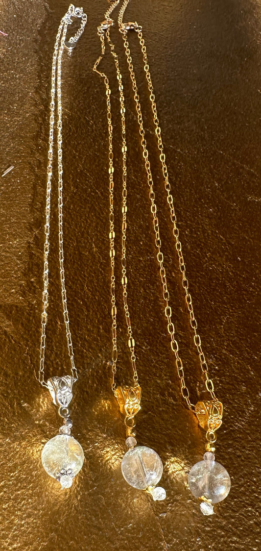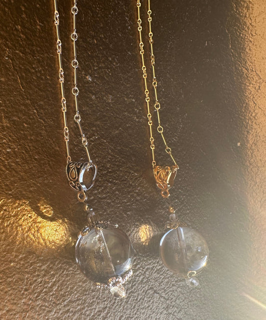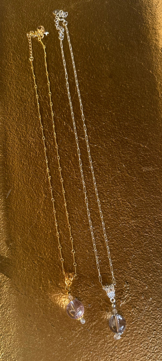 Inspired by the historic "Pools of Light" jewelry, this collection features handcrafted pieces that embody this style. Made from a variety of crystals and gemstones, the jewelry reflects the characteristics of Pools of Light, which were popular from approximately 1880 to 1920. This style is characterized by polished rock crystal quartz spheres. Renowned for their ability to refract light and create a glowing effect, rather than merely reflecting it, these pieces were believed to bring good luck and offer protection. They were prominently featured in both Victorian and Art Deco fashion. The Lala Lotus Co. collection adds a unique twist to this historic style by incorporating alternative materials such as rainbow moonstone, amethyst, fluorite, and more.
