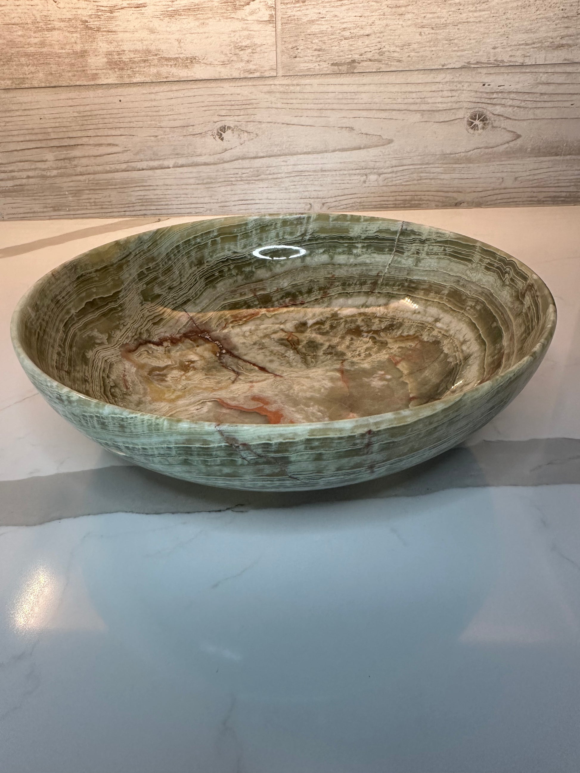This listing is for 1 Large Green Onyx Bowl. This is a 10 inch crystal bowl. It has been reikied by a certified energy healing and reiki master.