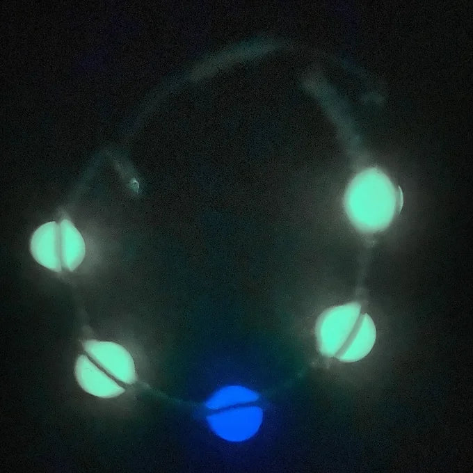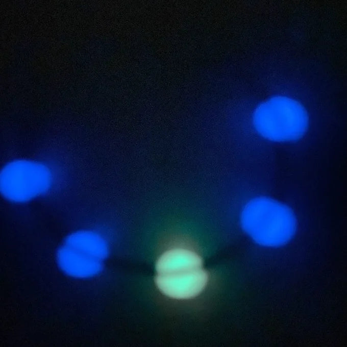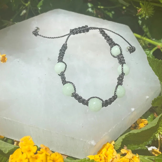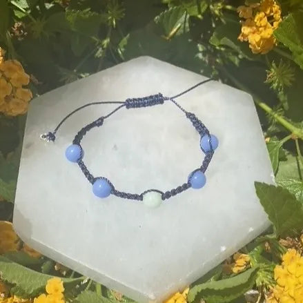 These handmade, adjustable bracelets come with reiki energy from a certified reiki master. Customize your glow-in-the-dark aragonite bracelet with various cord colors and bead patterns. Pick from options such as black, white, navy blue, light gray, a combination of blue & green, or all blue & green beads. Aragonite promotes grounding & stability, aiding concentration & helping with emotional stresses. It teaches tolerance & conservation, transforms geopathic stress, & helps with aches & pains. Blue aragonite transmits spiritual communication, resonates with the heart & third eye chakra, relieves stress, & heals the inner child. Green aragonite brings a calming energy, stabilizes spiritual growth, & assists with energetic blockages. You can customize your bracelet by selecting the bead pattern and cord color.