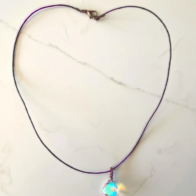 Faceted angel aura necklace is hand-made and reikied by a certified reiki master. These necklaces come in 15in, 16in, 17in, and 18in. You can choose the metal fixings on your necklace.