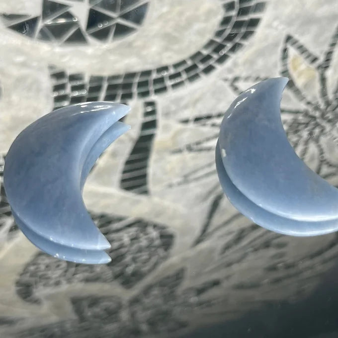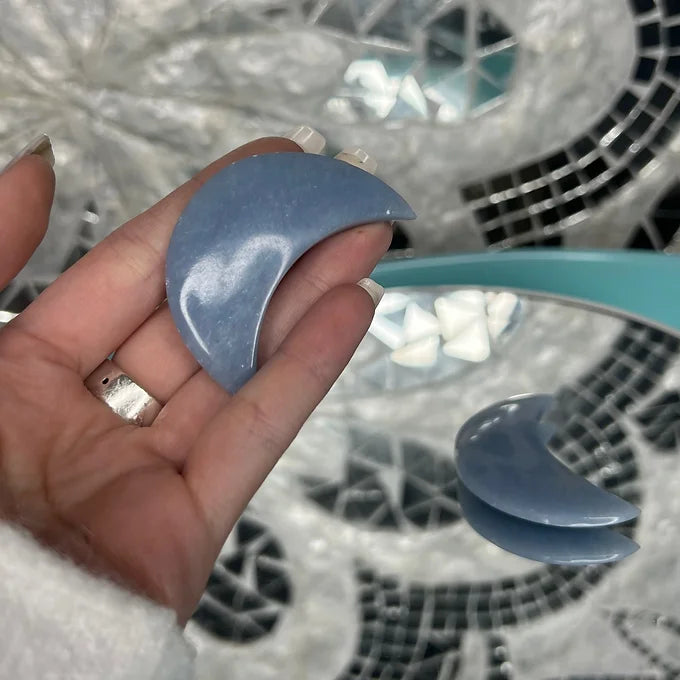 These beautiful Angelite Carved Moons have been hand-selected by a certified Energy Healing and Reiki Master. All crystals found at Lala Lotus Co. have been Reikied, charged, and cleansed.