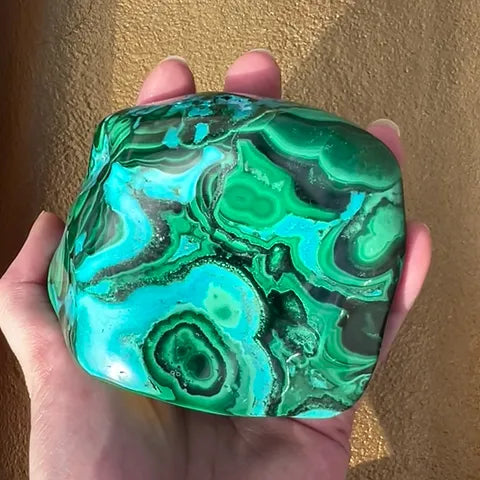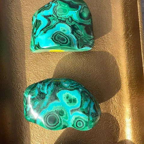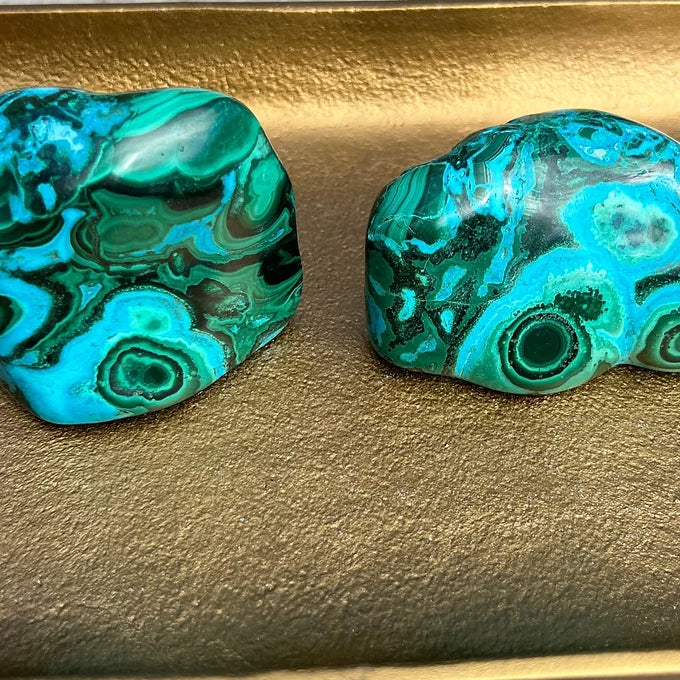 Azurite-Malachite is a soft stone and its surface can be easily damaged, please handle this crystal with care. Additionally, this copper carbonate combination is extremely sensitive to heat, as well as sun-bleaching. Always store your stone in a dark place and in a separate container from other jewelry pieces to prevent damage. DO NOT use steam or ultrasonic cleaners to wash this crystal, instead wipe the surface with a soft, dry cloth.