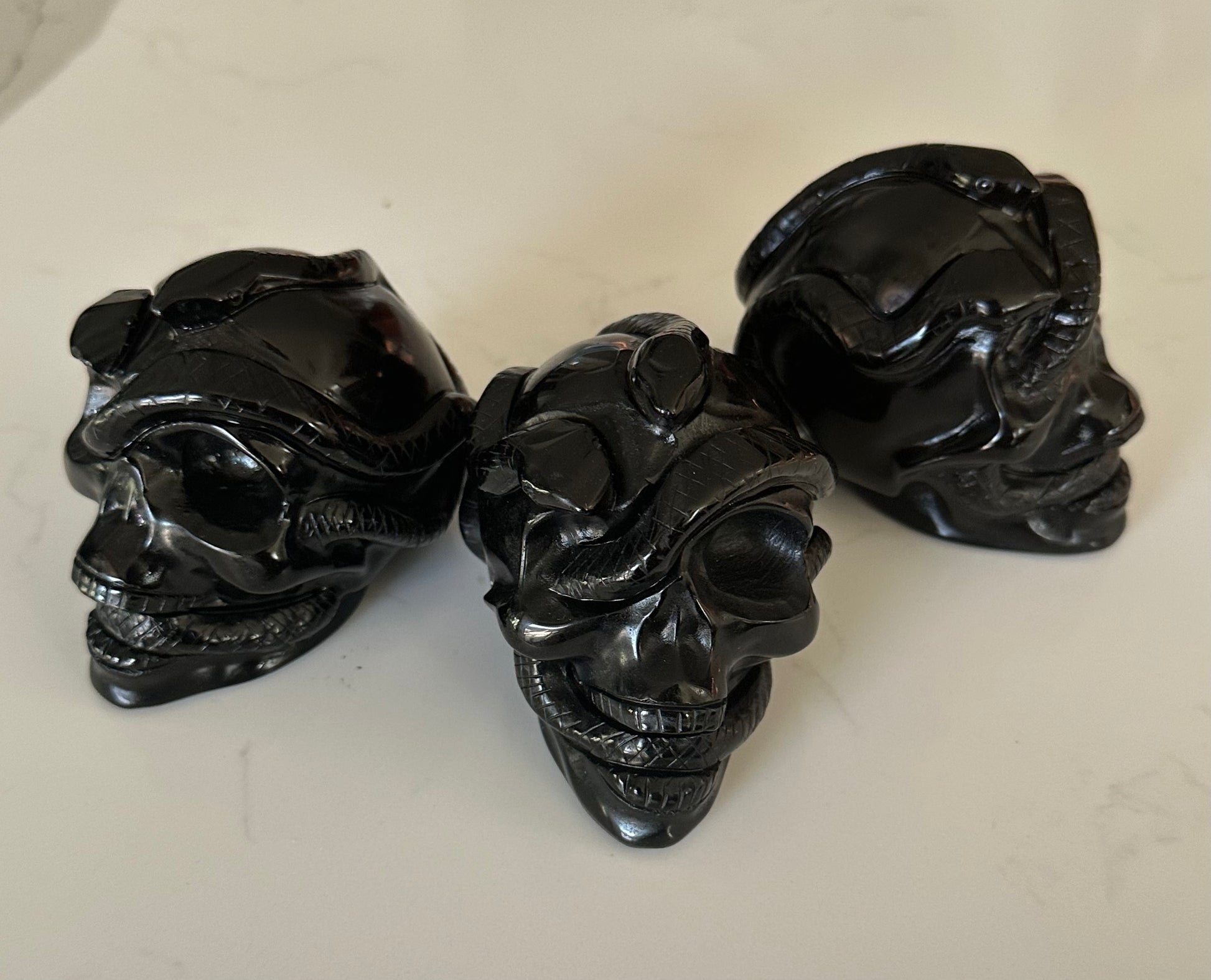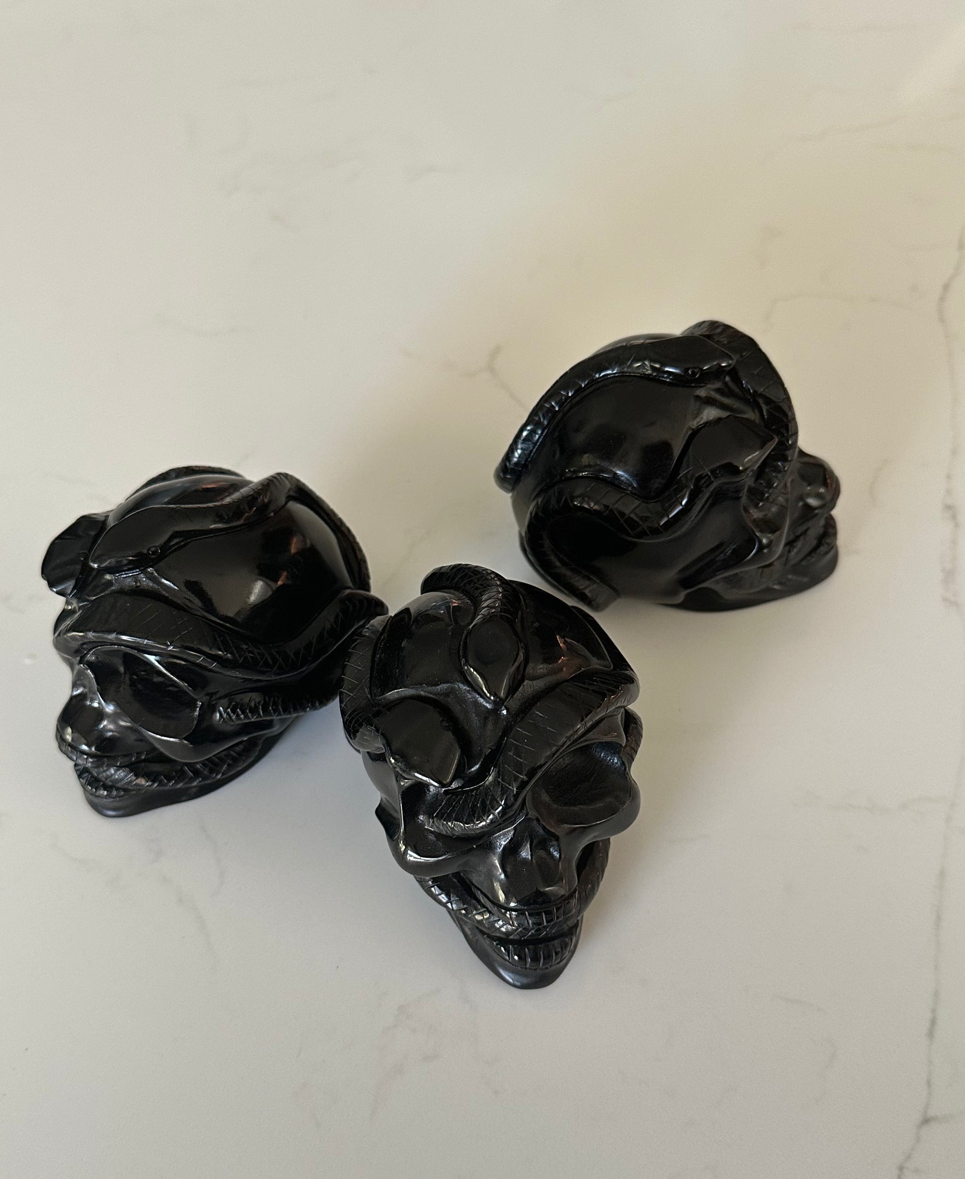 Black Obsidian Snake Skull