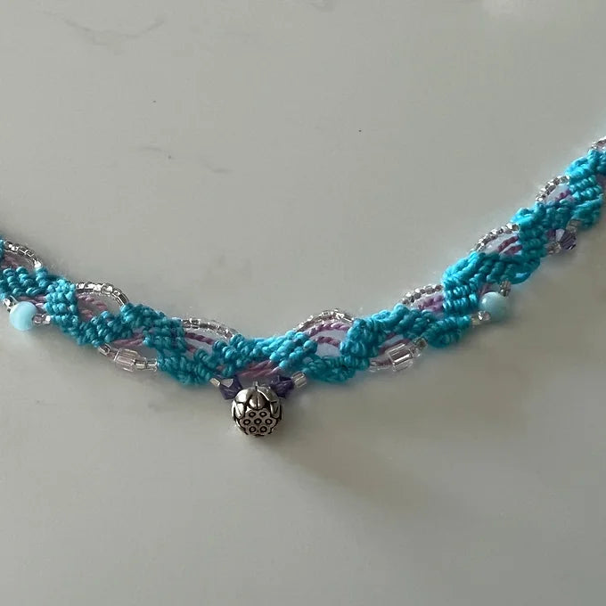 These Blue Lotus Chokers are handmade by Lauren and have been reiki by a certified reiki master. Made with over 300 beads, these necklaces were inspired by Lauren’s belly dance background. Each necklace is made with intention, these necklaces are made with a cyan blue cotton cord and a lavender purple cotton cord. These chokers are lightweight, comfortable, and beautiful. Each necklace is 13 inches long. You can customize your necklace by: