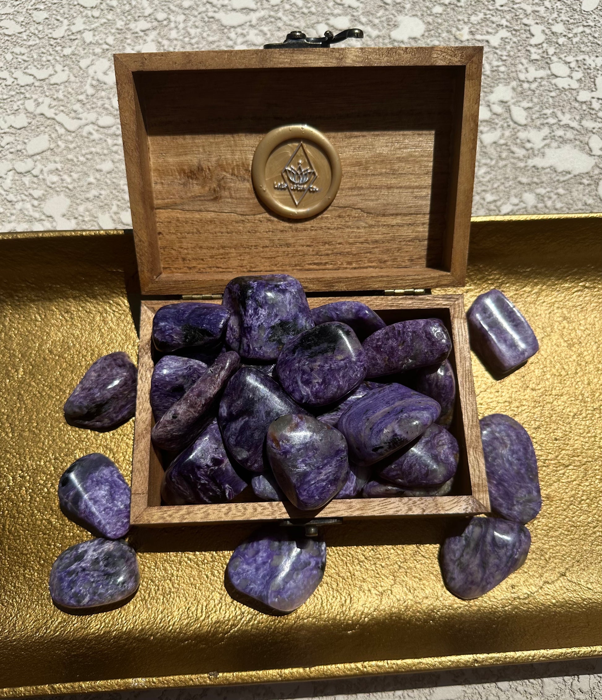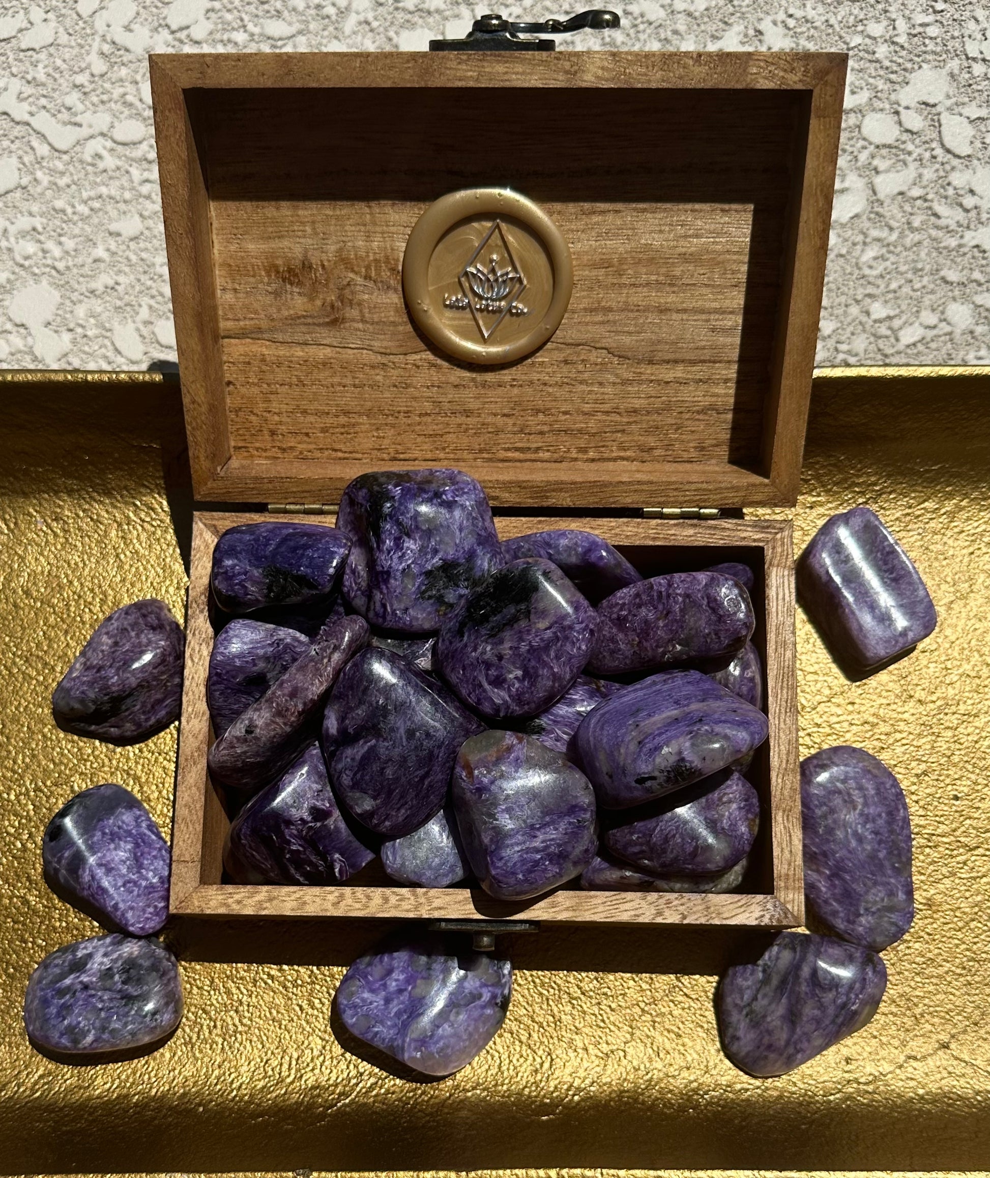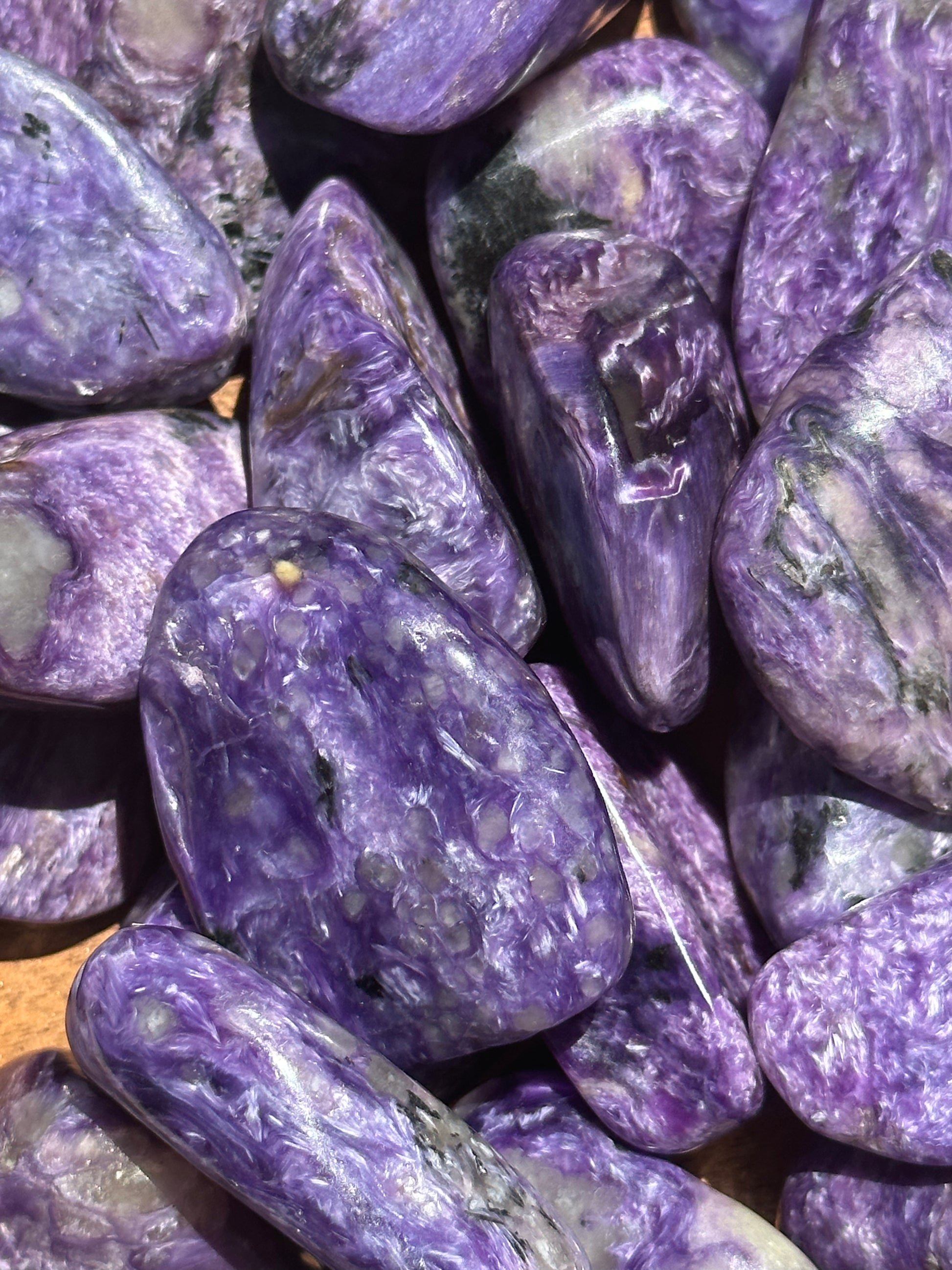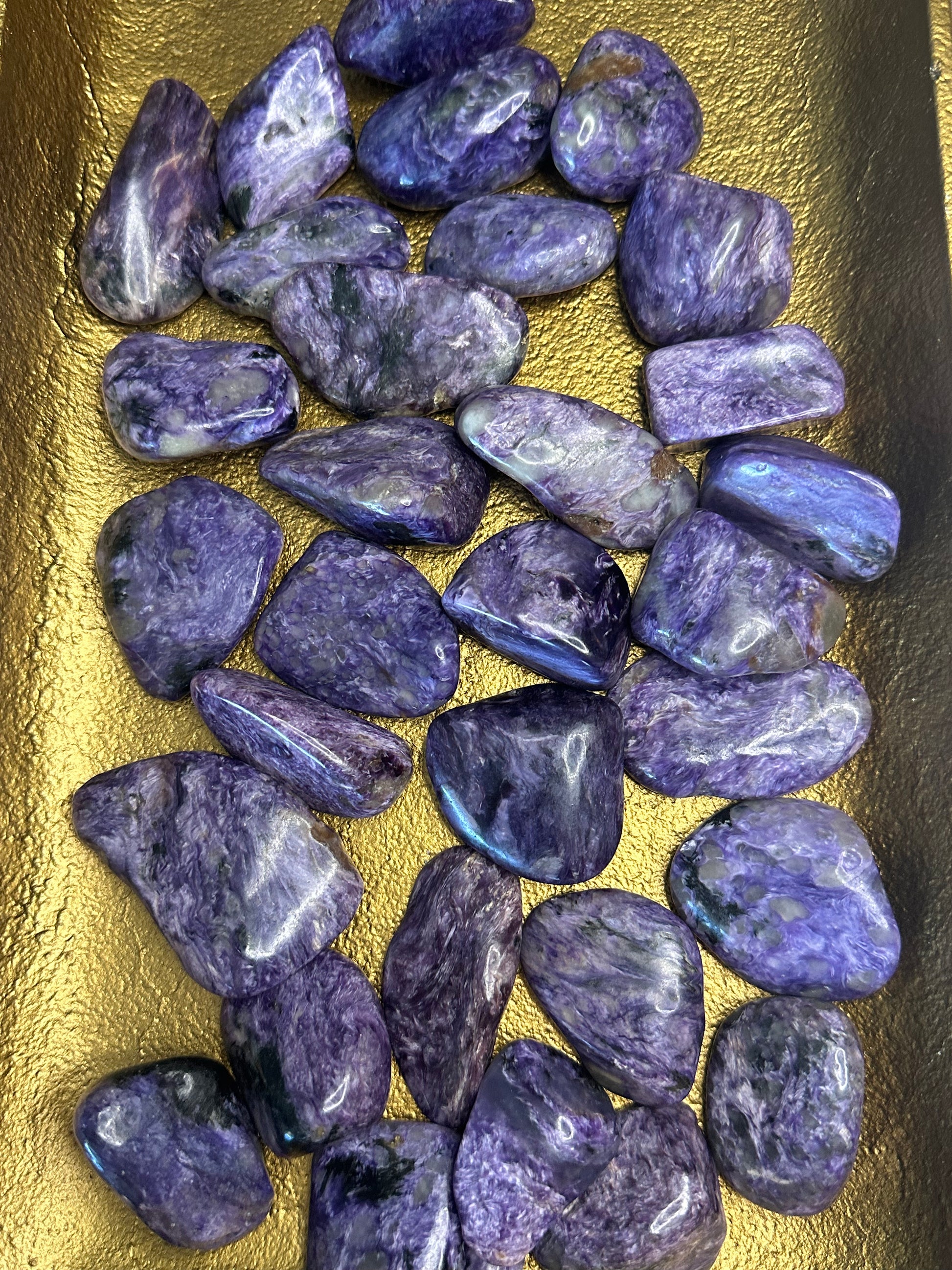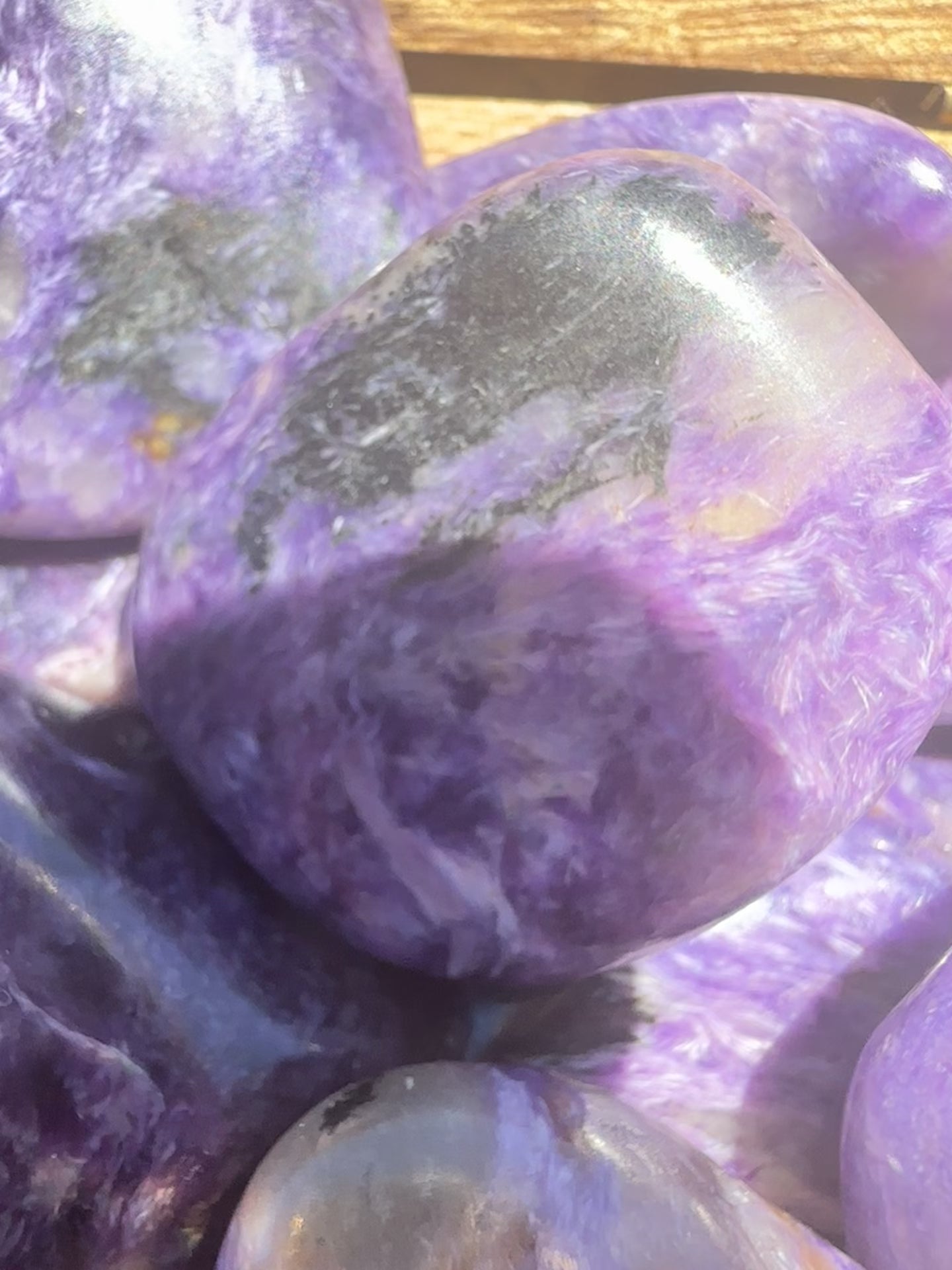 This listing is for 1 intuitively selected Charolite tumble - a rare, purple crystal. Reiki-treated by a certified energy healer and master, Charolite is known as the Stone of Transformation, helping to transmute negative emotions into positive vibes, boosting inner strength, assertiveness, creativity and self-esteem. Linked to the Crown, Third Eye, Heart and Solar Plexus chakras, it detoxifies auras and chakras by releasing negative energy, opening the heart to unconditional love and reducing stress. It accelerates spiritual growth and awakening, and connects us to other souls, dualities and Earth. Charolite is ideal for psychics, healers and sages. Meditating with it can uncover deep insight, and its balancing effects can be beneficial to those with ADHD/Asperger's. The serene energy of this purple talisman boosts self-confidence, courage and clarity, aiding decision-making based on love rather than fear.