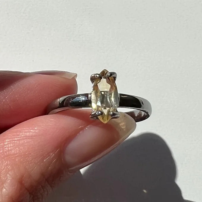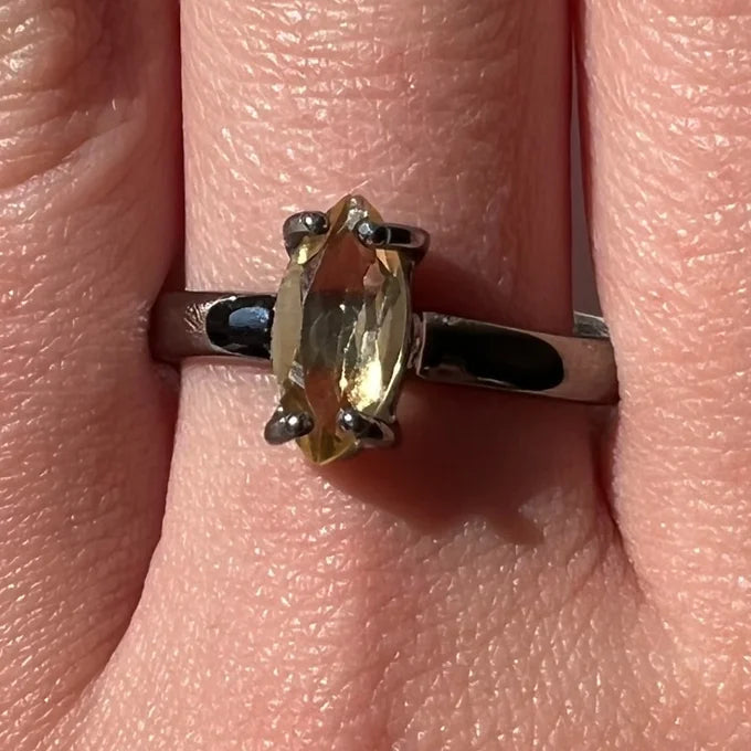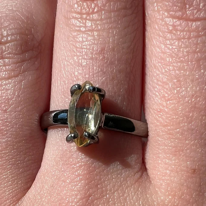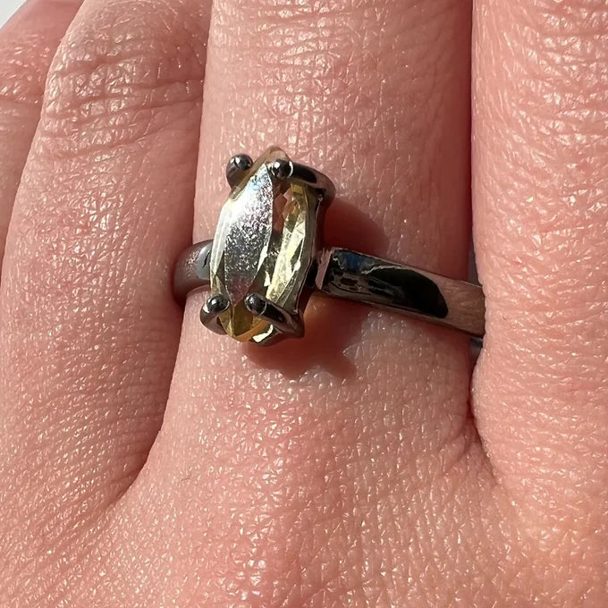 Citrine ring is a sterling silver, gunmetal plated ring. It is adjustable and Reikied by a certified master.