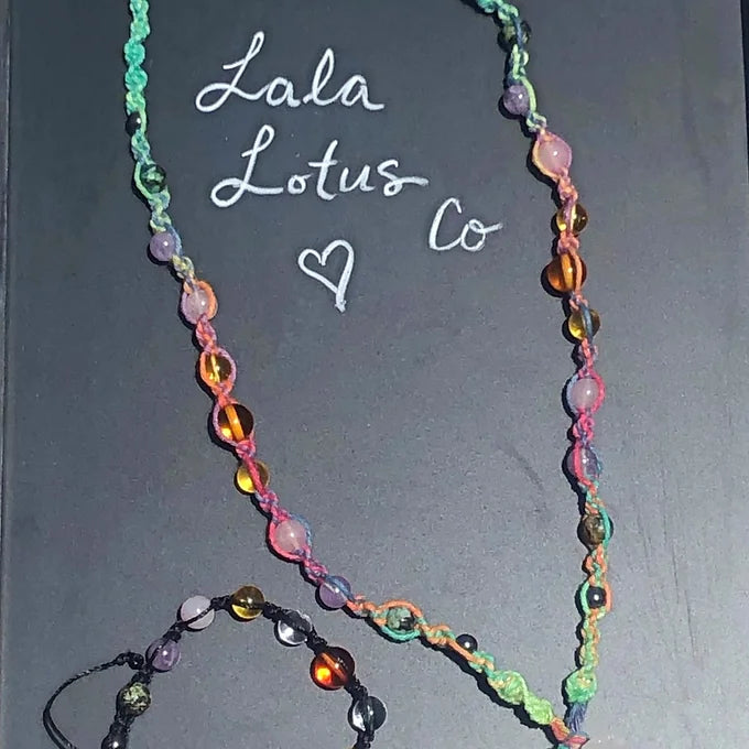 Lala Lotus Co. offers a matching bracelet for this necklace. The necklace is $45, the bracelet is $25. If bought together we offer 20% off of the total coming to $56