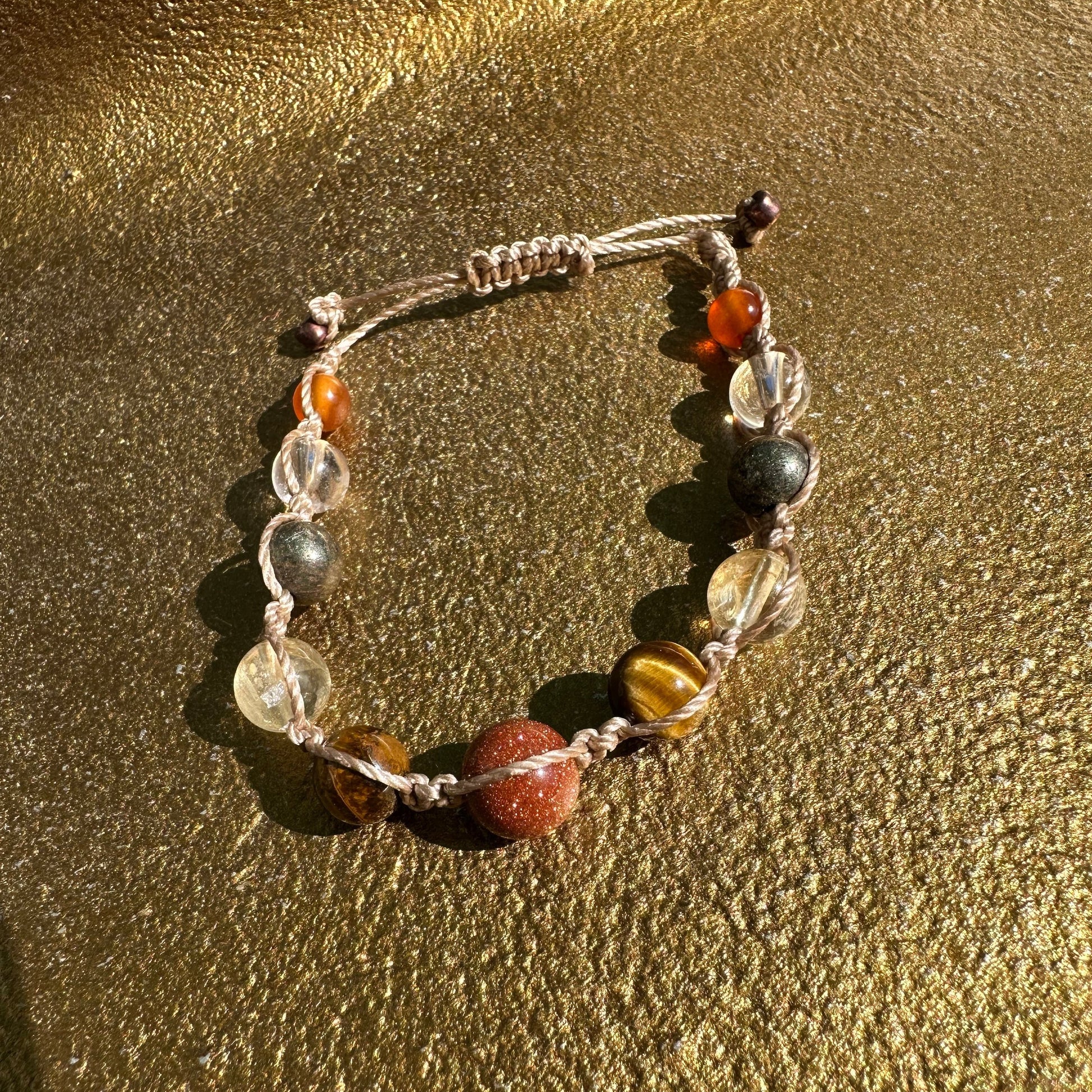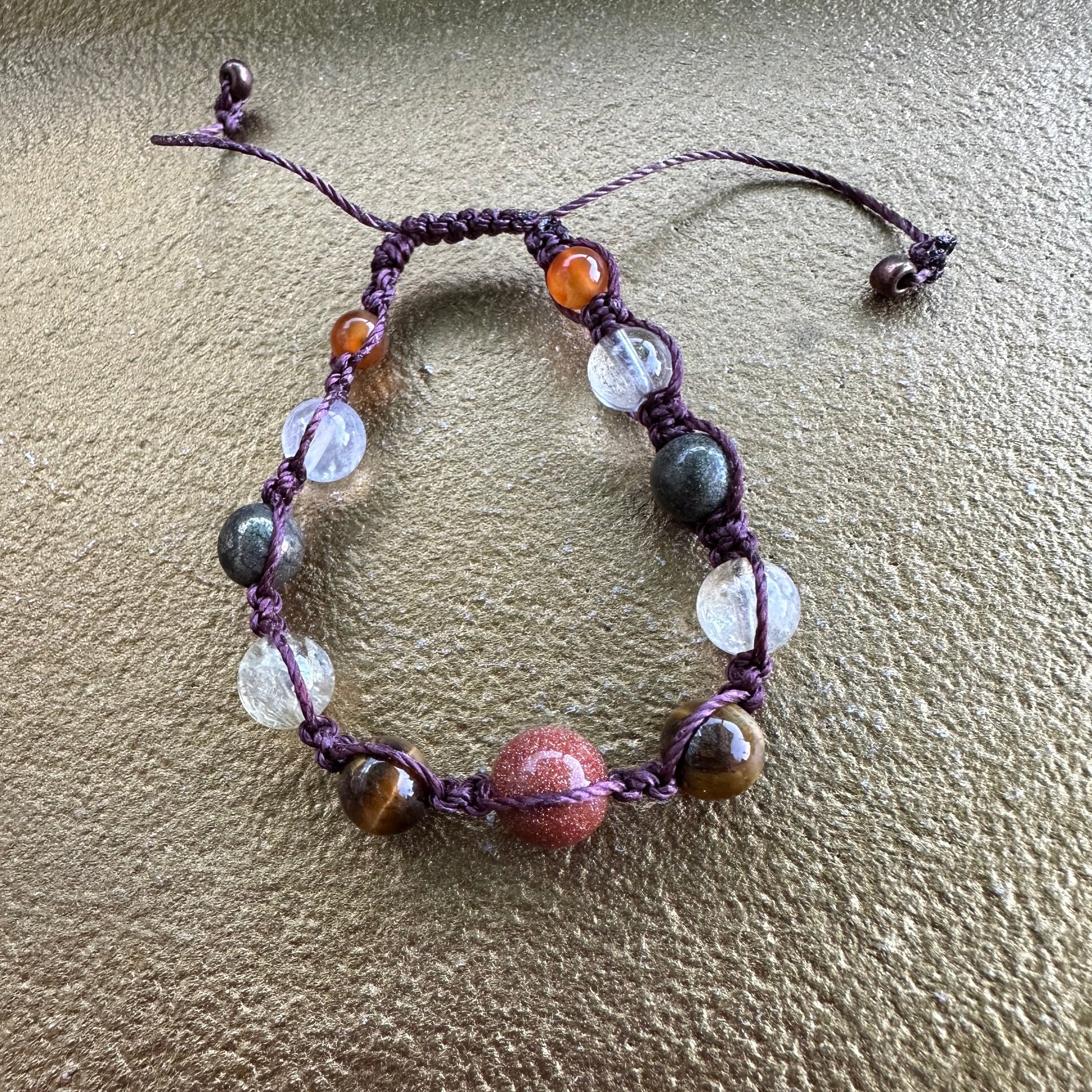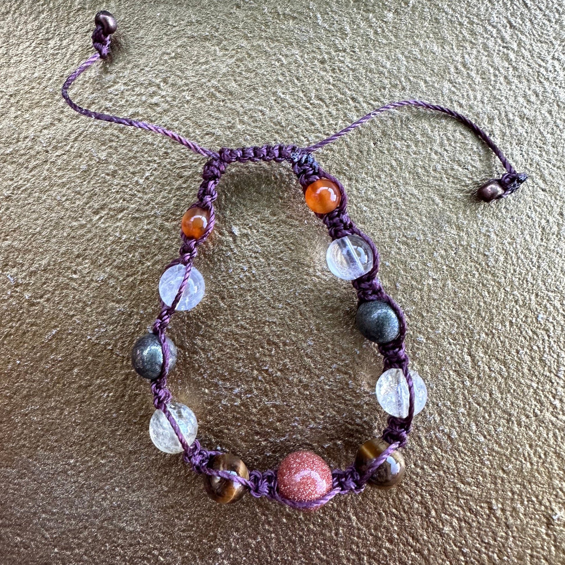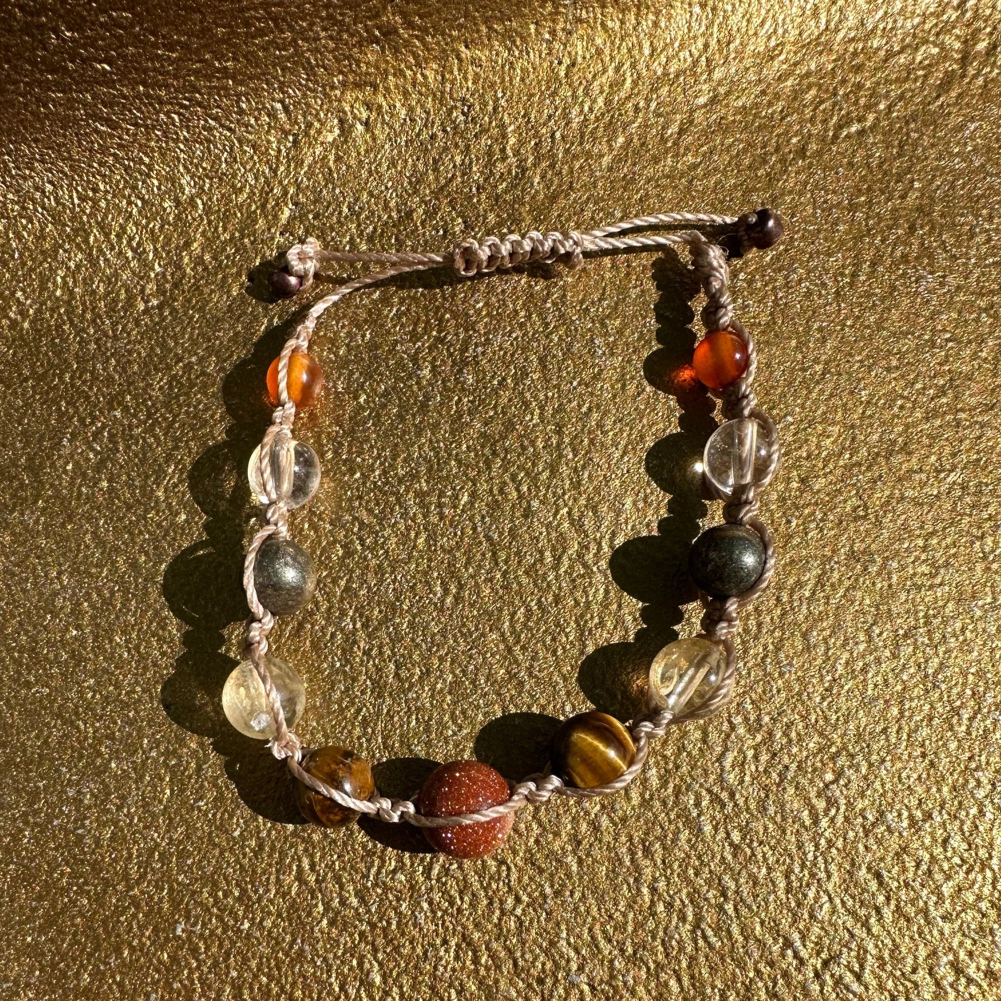 Presenting our new autumn-inspired collection: the Creativity, Success, and Solar Plexus Bracelet. This adjustable bracelet is designed to manifest good luck, success, and creativity while activating the solar plexus. Hand-crafted with care and infused with positive energy by a certified energy healing and reiki expert, it features a powerful combination of Carnelian, Citrine, Pyrite, Clear Quartz, Tiger's Eye, and Citrine crystals. Choose from a variety of fall colors to customize your bracelet, including Wheat, Gold, Chocolate, Mahogany, Black Currant, Purple, Navy Blue, Black, and Myrtle Green. See our sample photo for color options.