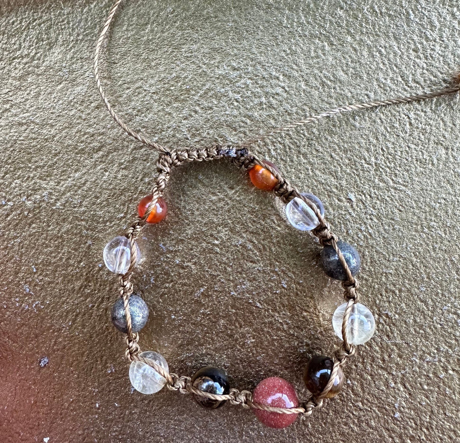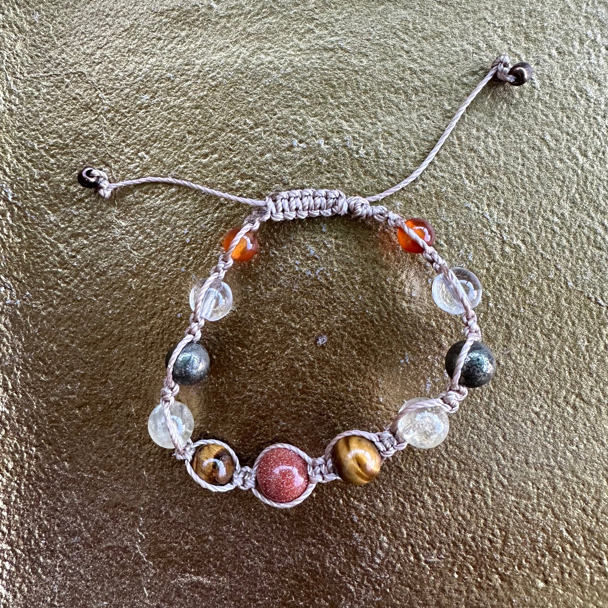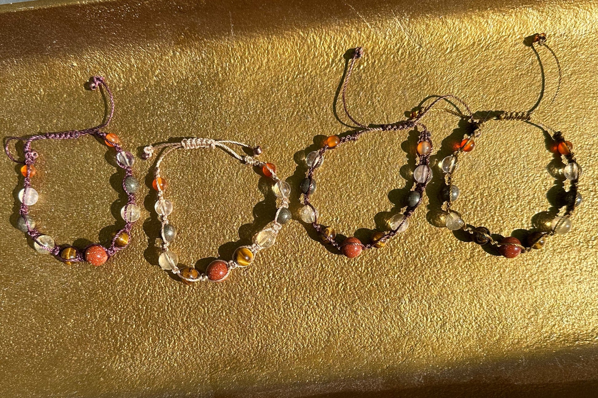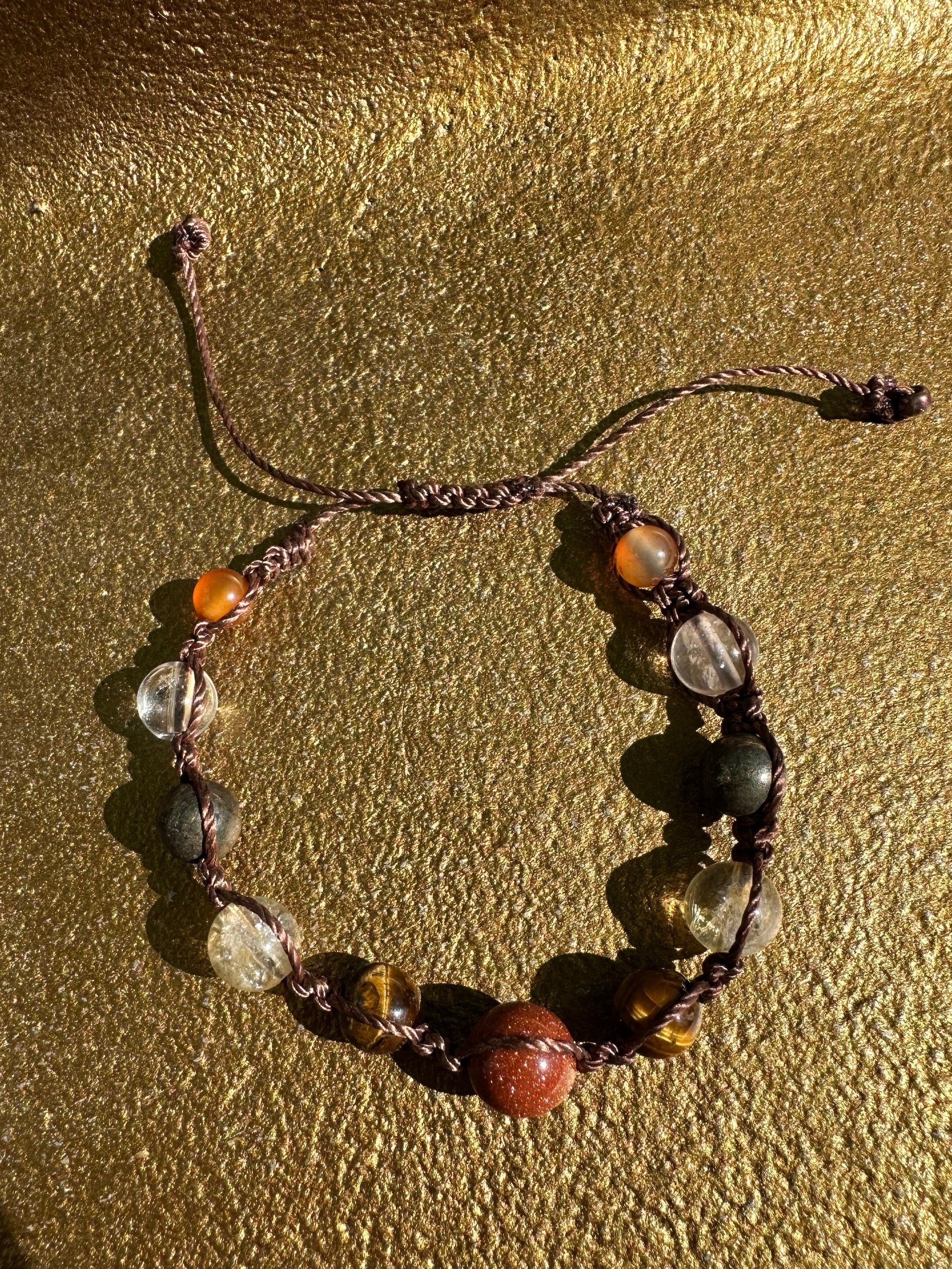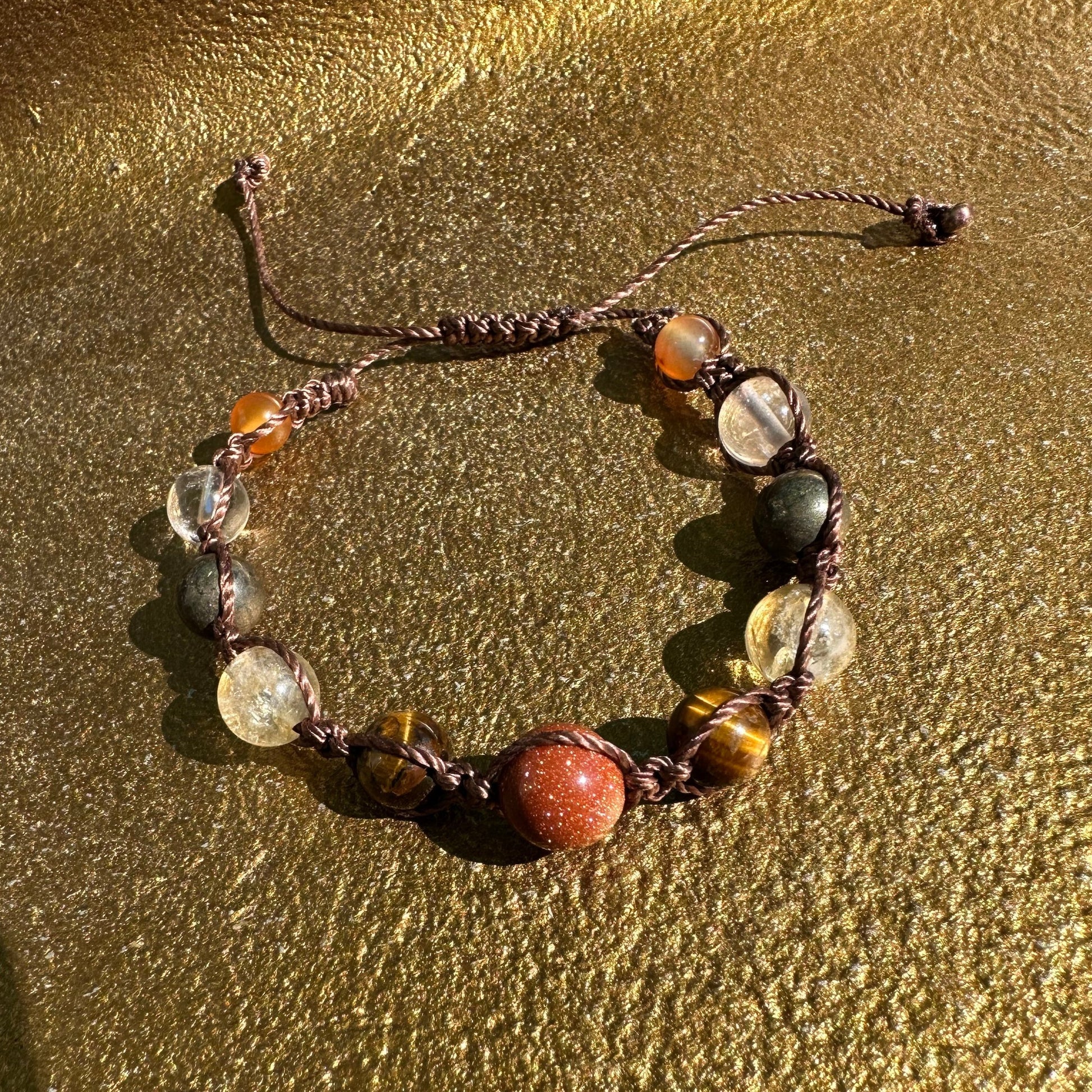 Presenting our new autumn-inspired collection: the Creativity, Success, and Solar Plexus Bracelet. This adjustable bracelet is designed to manifest good luck, success, and creativity while activating the solar plexus. Hand-crafted with care and infused with positive energy by a certified energy healing and reiki expert, it features a powerful combination of Carnelian, Citrine, Pyrite, Clear Quartz, Tiger's Eye, and Citrine crystals. Choose from a variety of fall colors to customize your bracelet, including Wheat, Gold, Chocolate, Mahogany, Black Currant, Purple, Navy Blue, Black, and Myrtle Green. See our sample photo for color options.