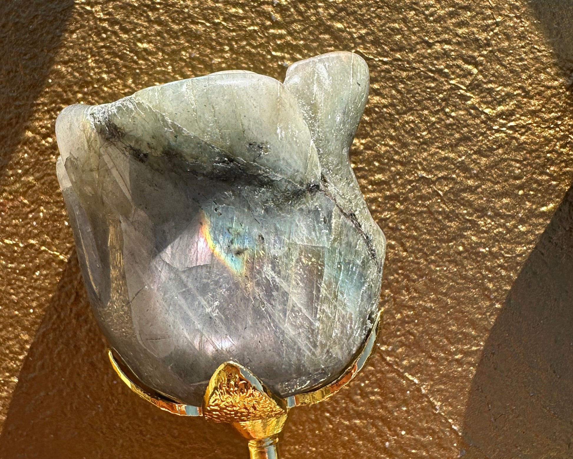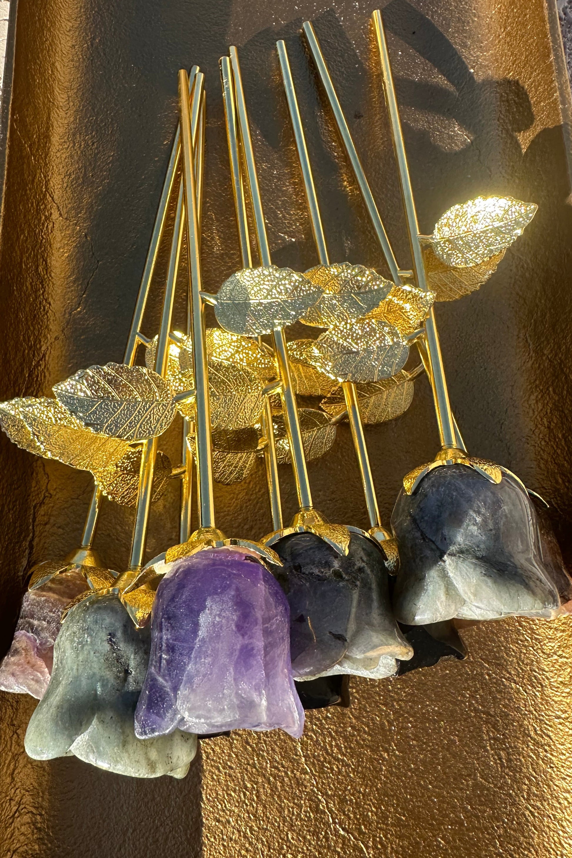 This listing is for one crystal-carved rose. You can choose your desired stone from Black Obsidian, Labradorite, or Fluorite. Each of these hand-cut crystal roses has been reiki blessed.
