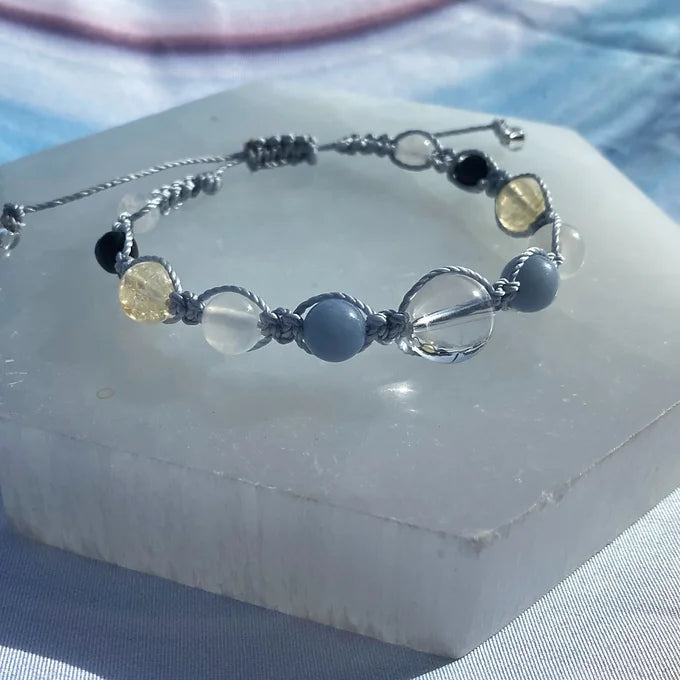This full moon bracelet was handmade with stones to help balance full moon energies. These Bracelets have been reikied with the intention of healing, balancing, and calming.