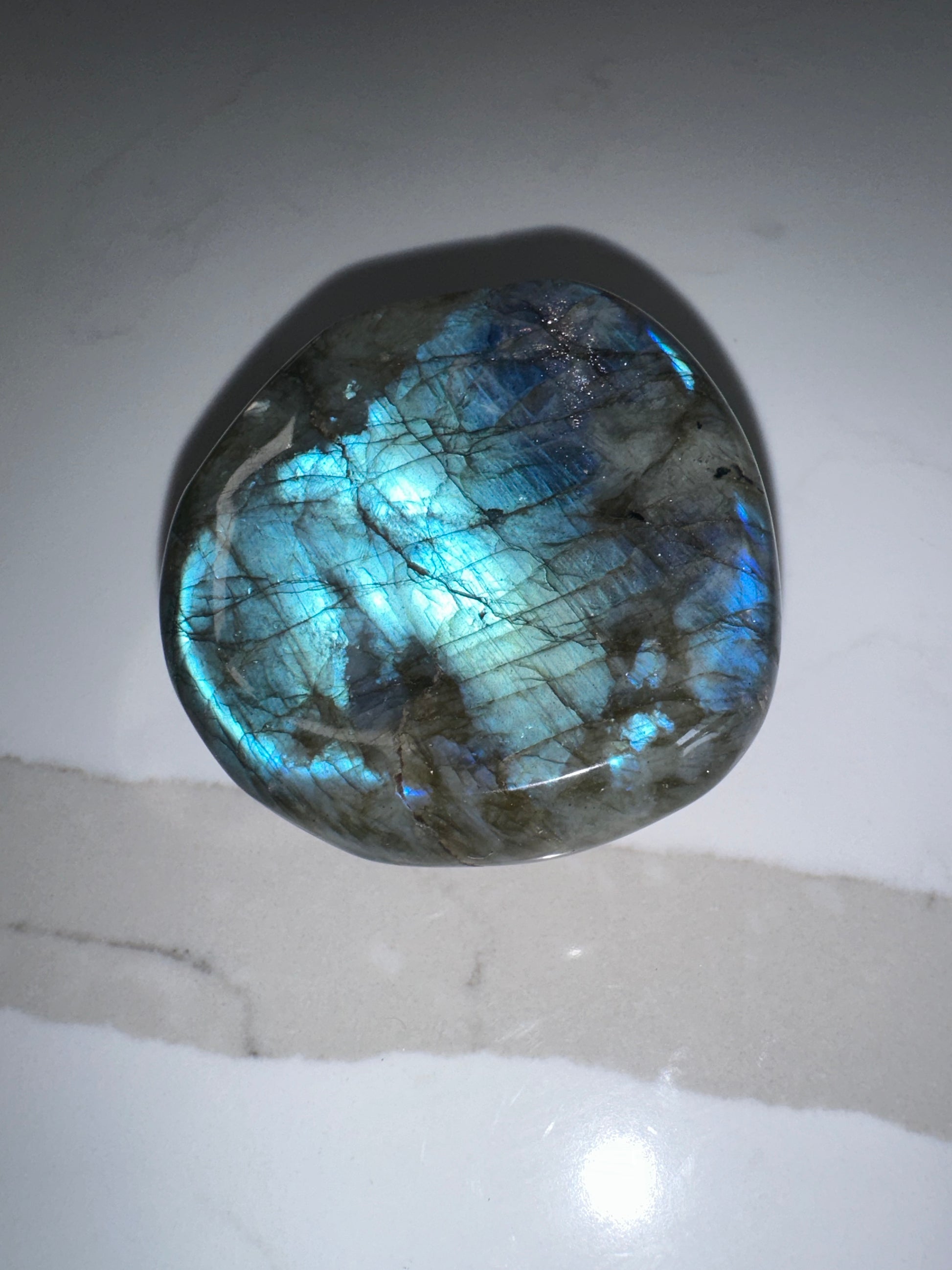 Labradorite- Labradorite is known to be the stone of transformation. This highly spiritual stone is a useful companion through change, imparting strength and perseverance. It is known to balance and protect the aura, and raises consciousness. Labradorite is also useful for grounding spiritual energies. Additionally, it is excellent for strengthening intuition - promoting psychic abilities. Labradorite is powerful in revealing the truth behind illusions. Labradorite is helpful with banishing fears and insecurities. It strengthens faith in the self and trust in the universe. It stimulates the imagination and calms an overactive mind, developing enthusiasm and new ideas.