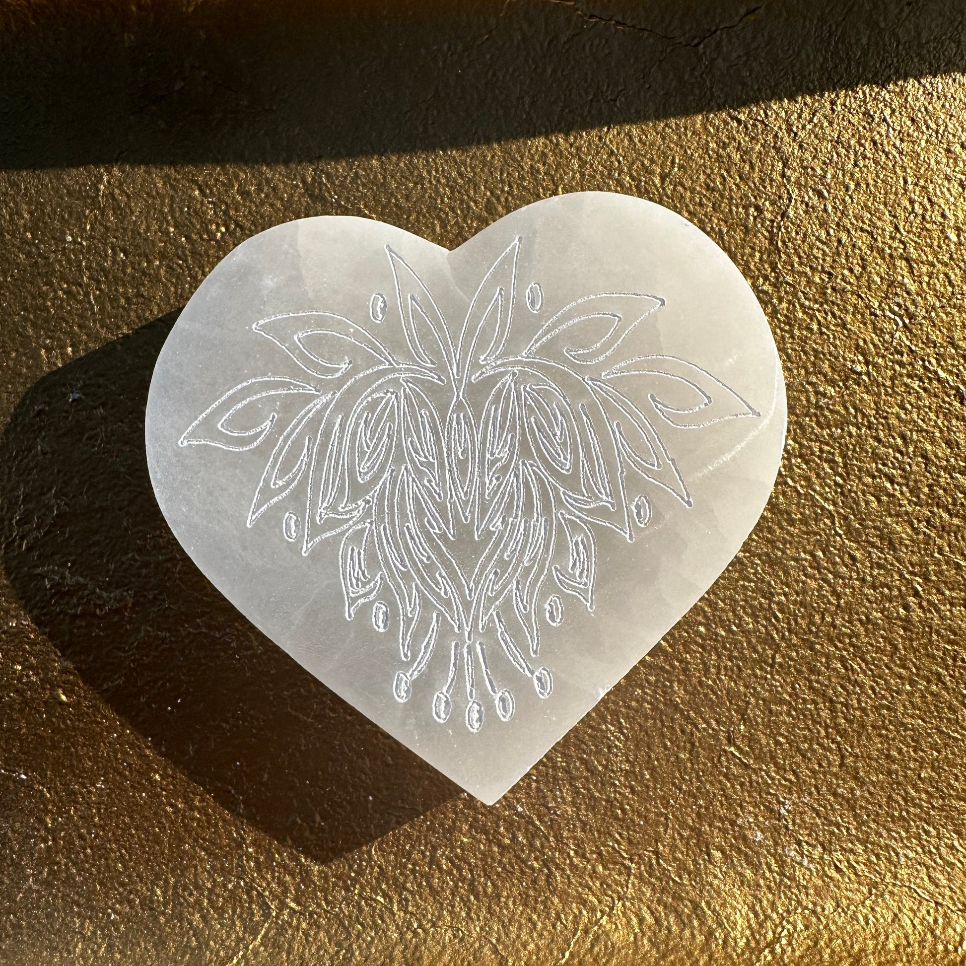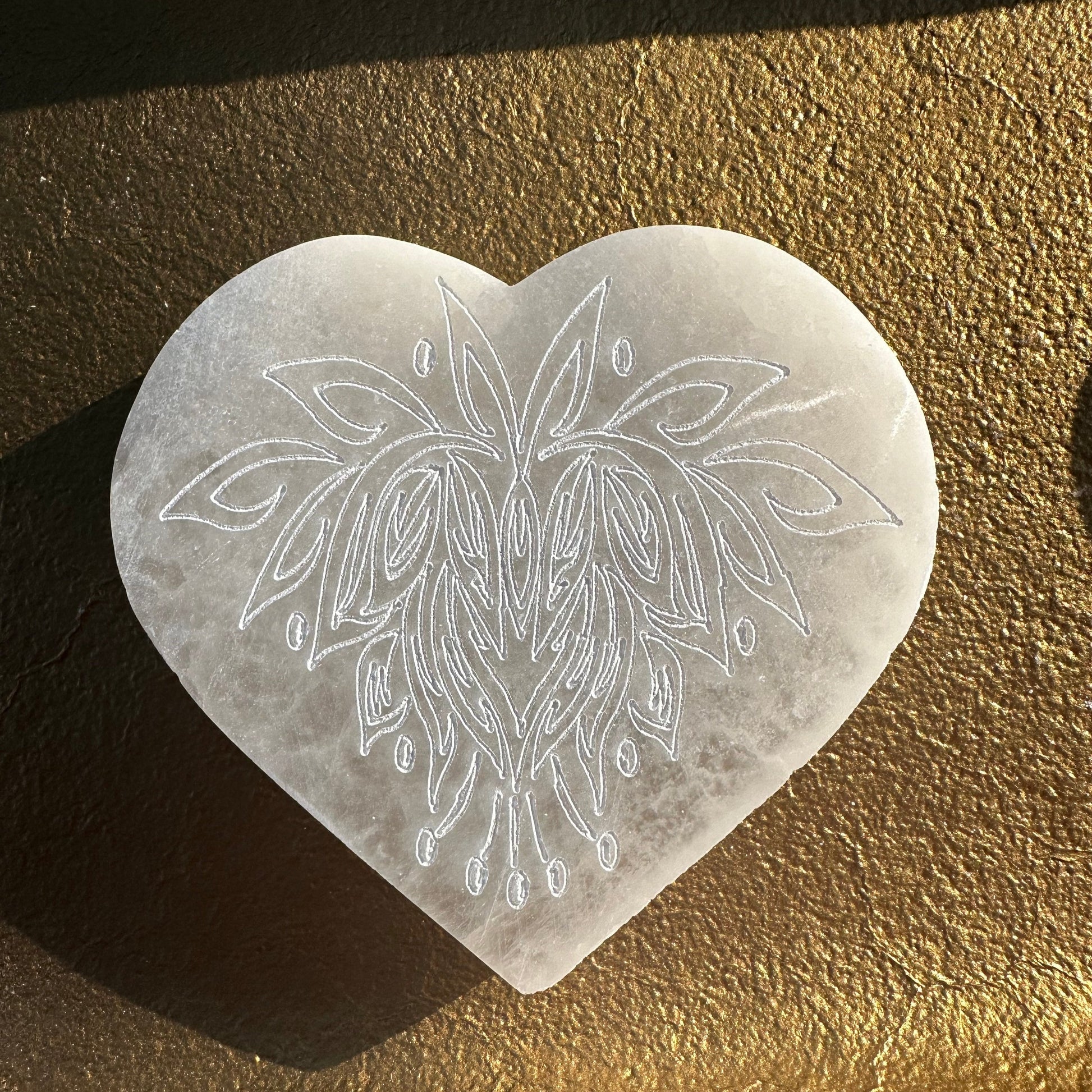 Lotus Etched Heart Selenite Charging Plate