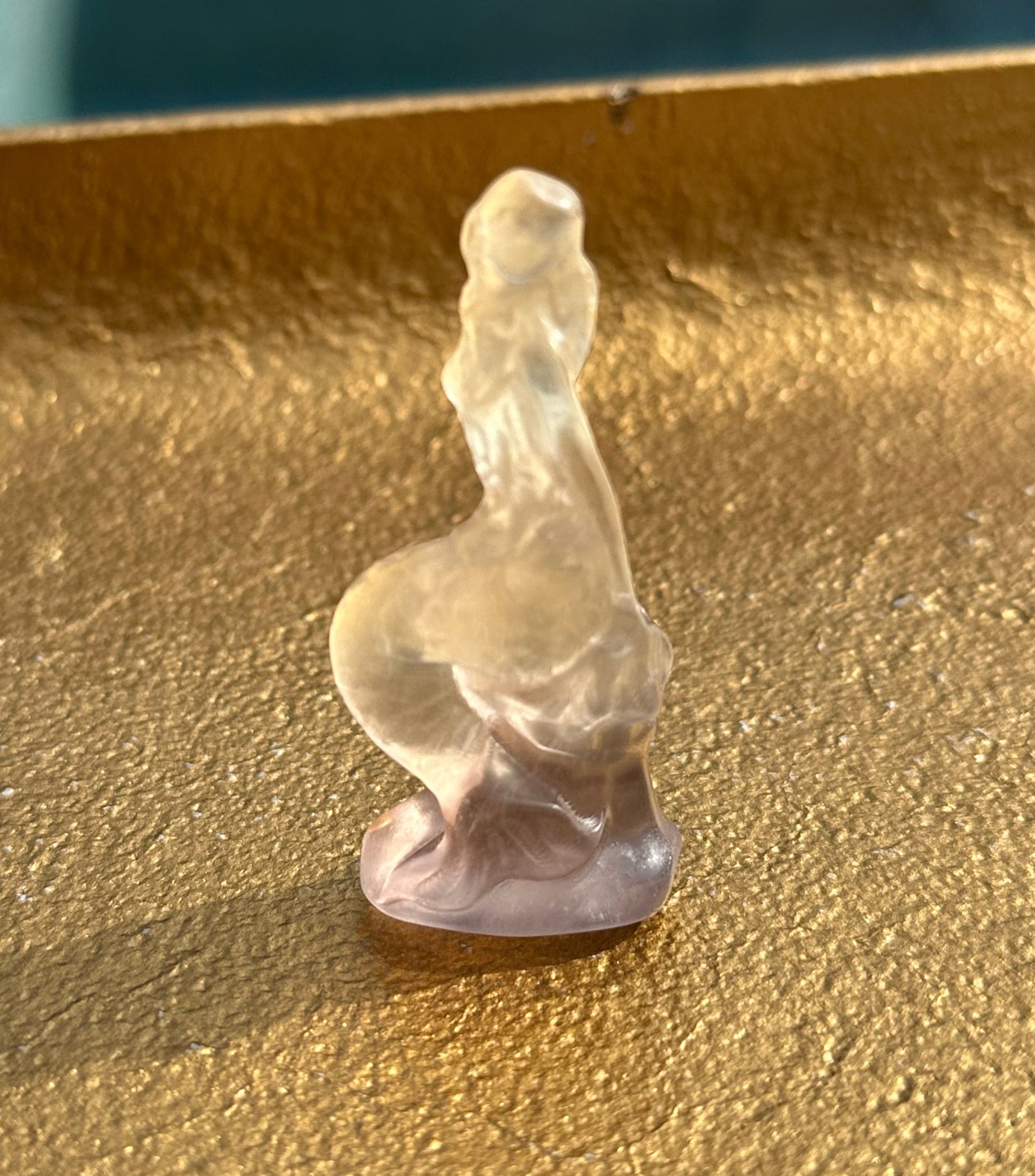 This listing offers a single reiki-blessed Mini Rainbow Fluorite Mermaid. You may select either the clear and purple fluorite figurine or the green and purple variant.