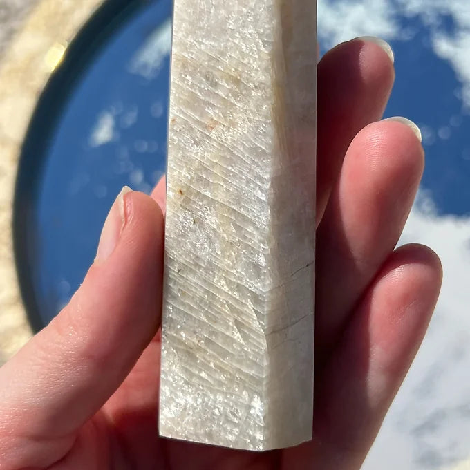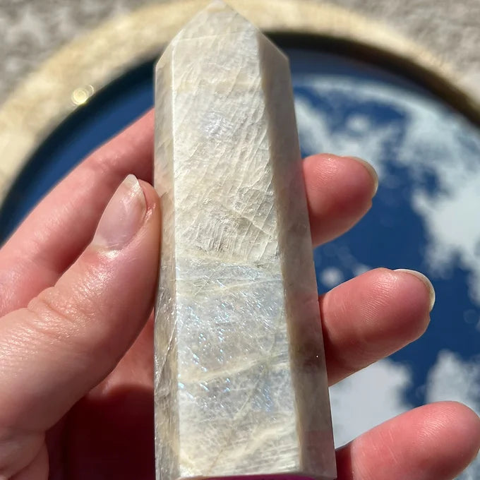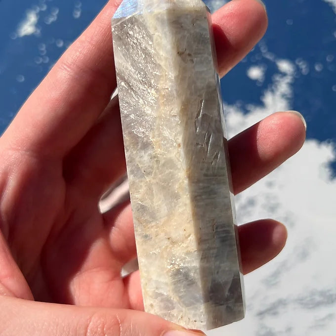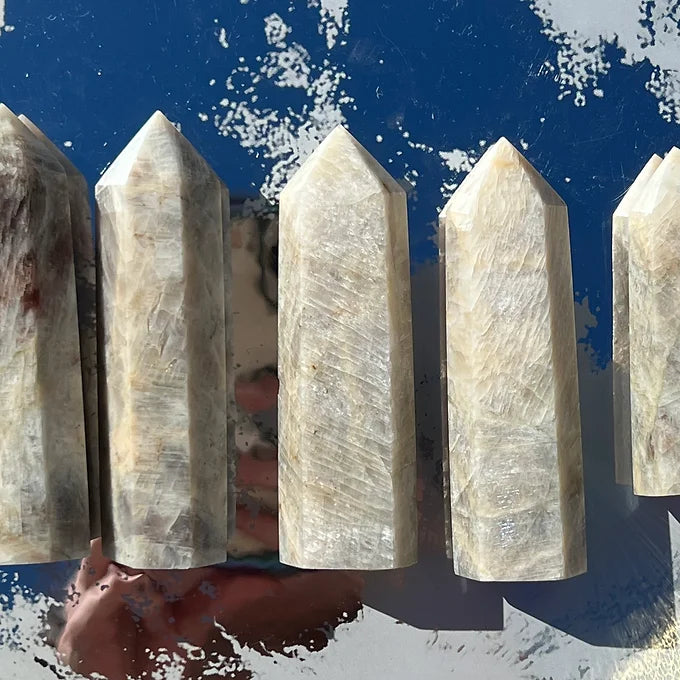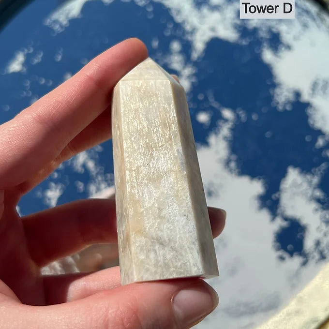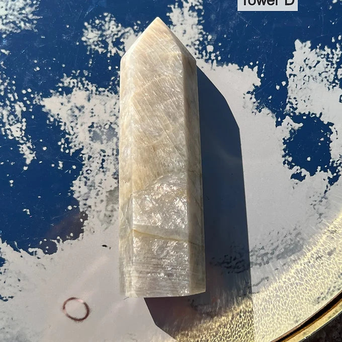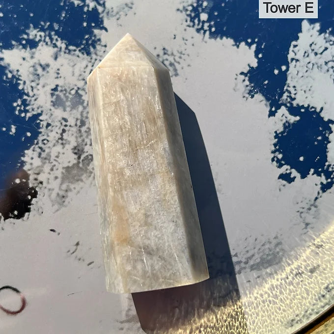 This listing is for 1 Moonstone tower of your choice. Please refer to the product photos for crystal selction. In the top right corner, the crystals will be labeled " A, B, C, D, or E."