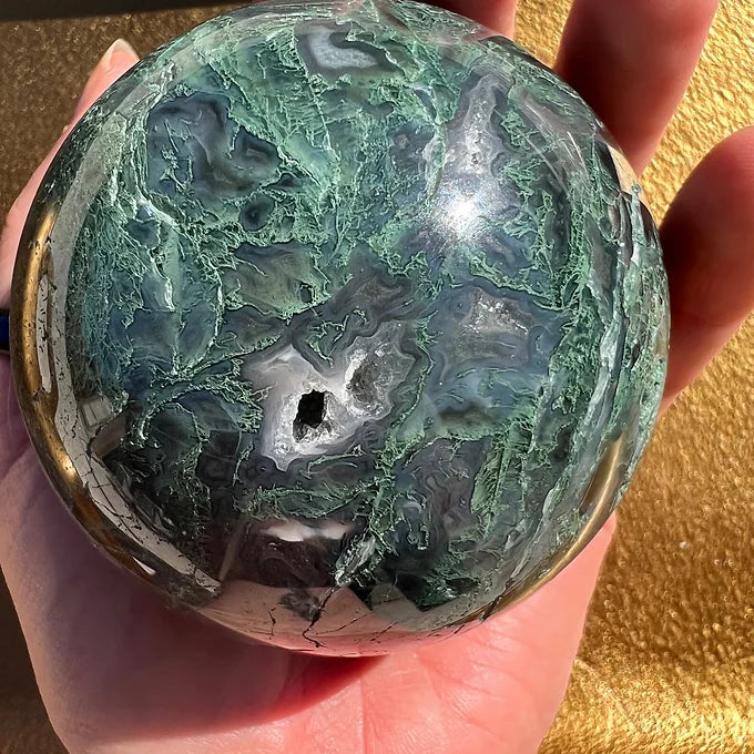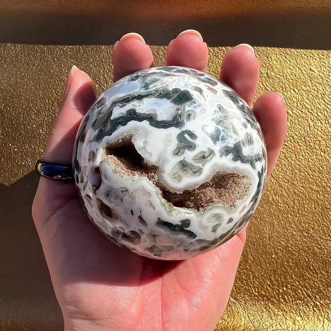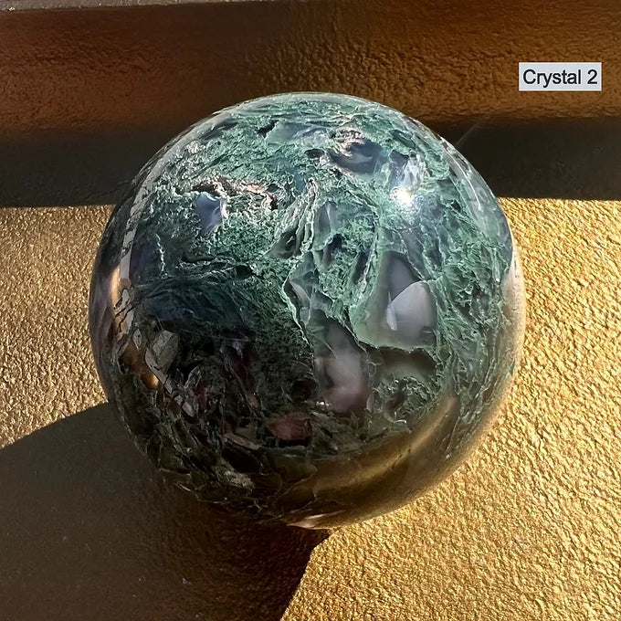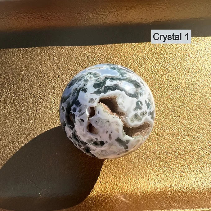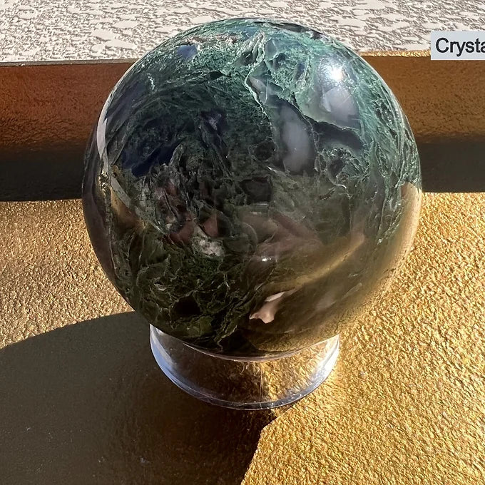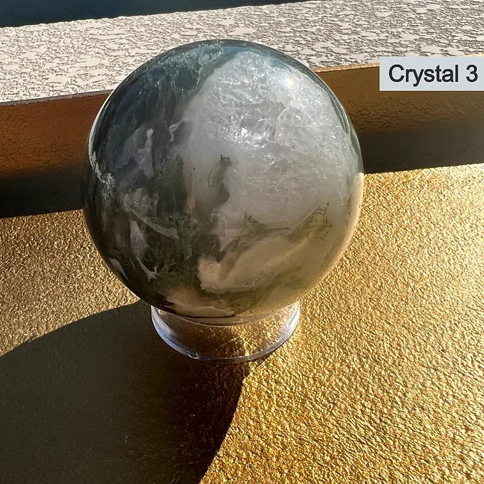 This listing is for one Moss Agate Sphere of your choice. Please refer to the product photos for the crystal selection, there will be a crystal number in the upper right corner of the product photos. Each SPhere comes with a free acrylic stand courtesy of Lala Lotus Co. Each crystal found at Lala Lotus Co. has been reikied by a certified reiki master.