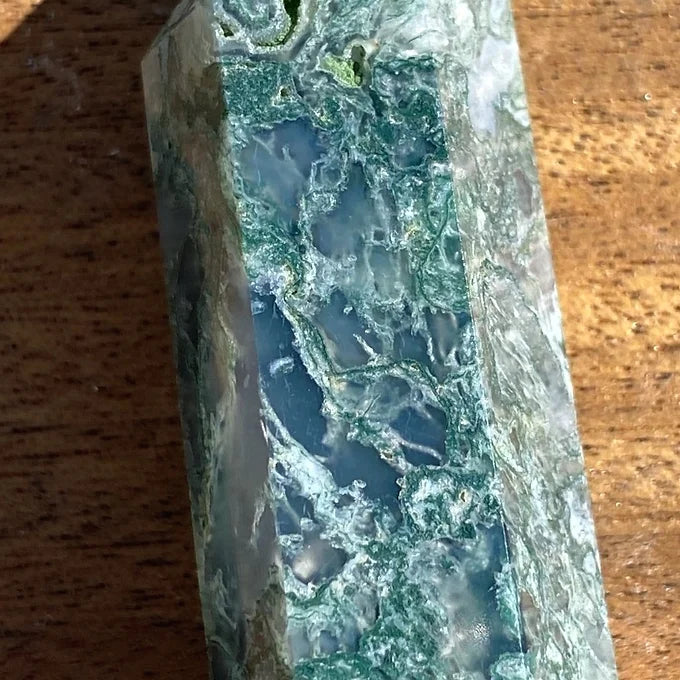 These moss agate towers have been reikied by a certified reiki master. Select which crystal you would like by using the drop-down menu.