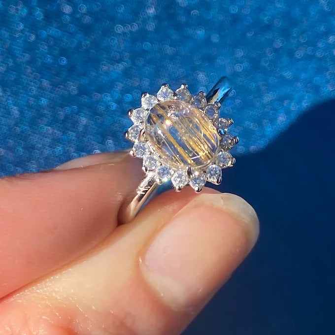 Natural Gold Rutilated Quartz Ring is grade AAA and has been reikied by a certified reiki master. This ring has an adjustable silver band.