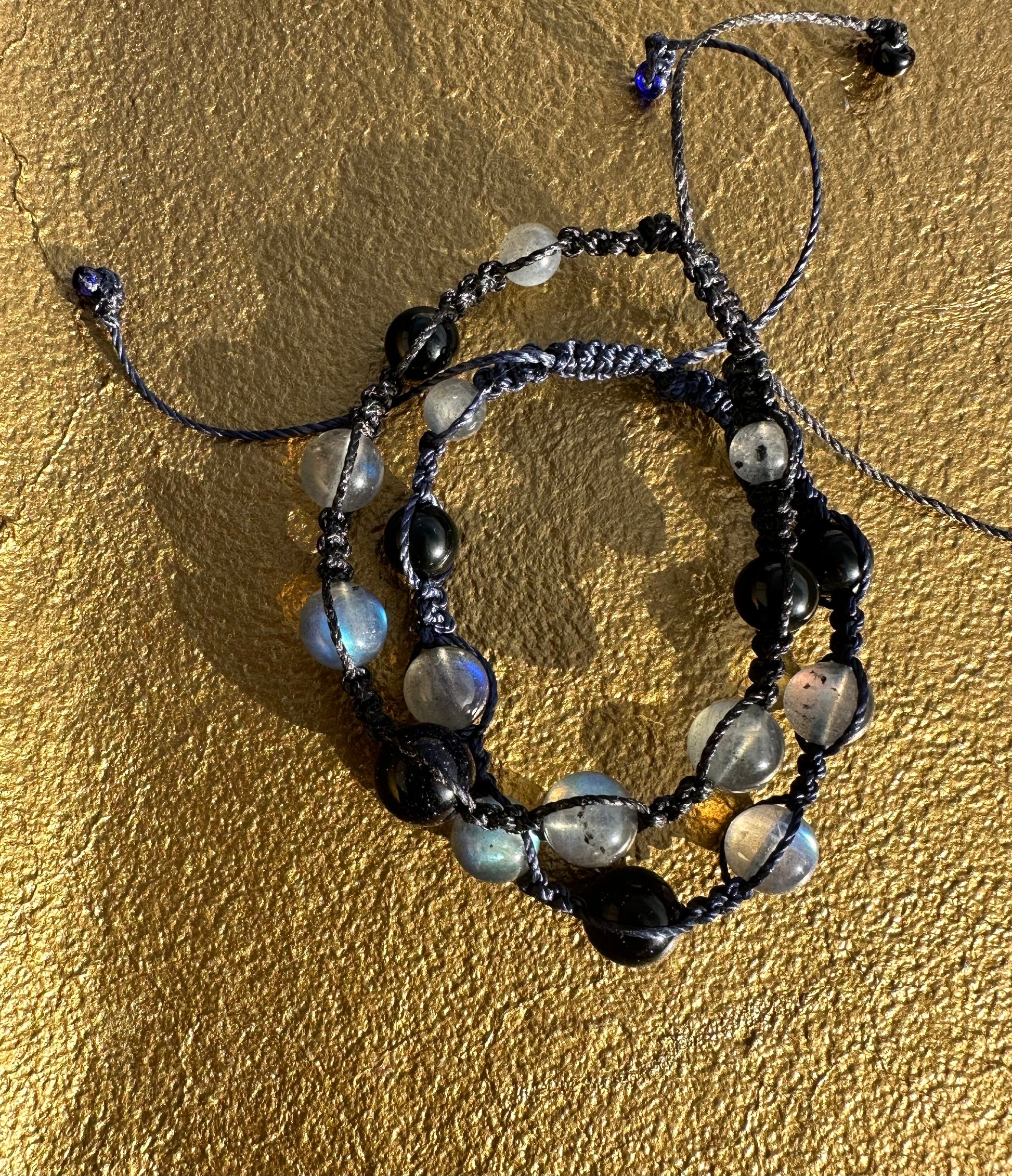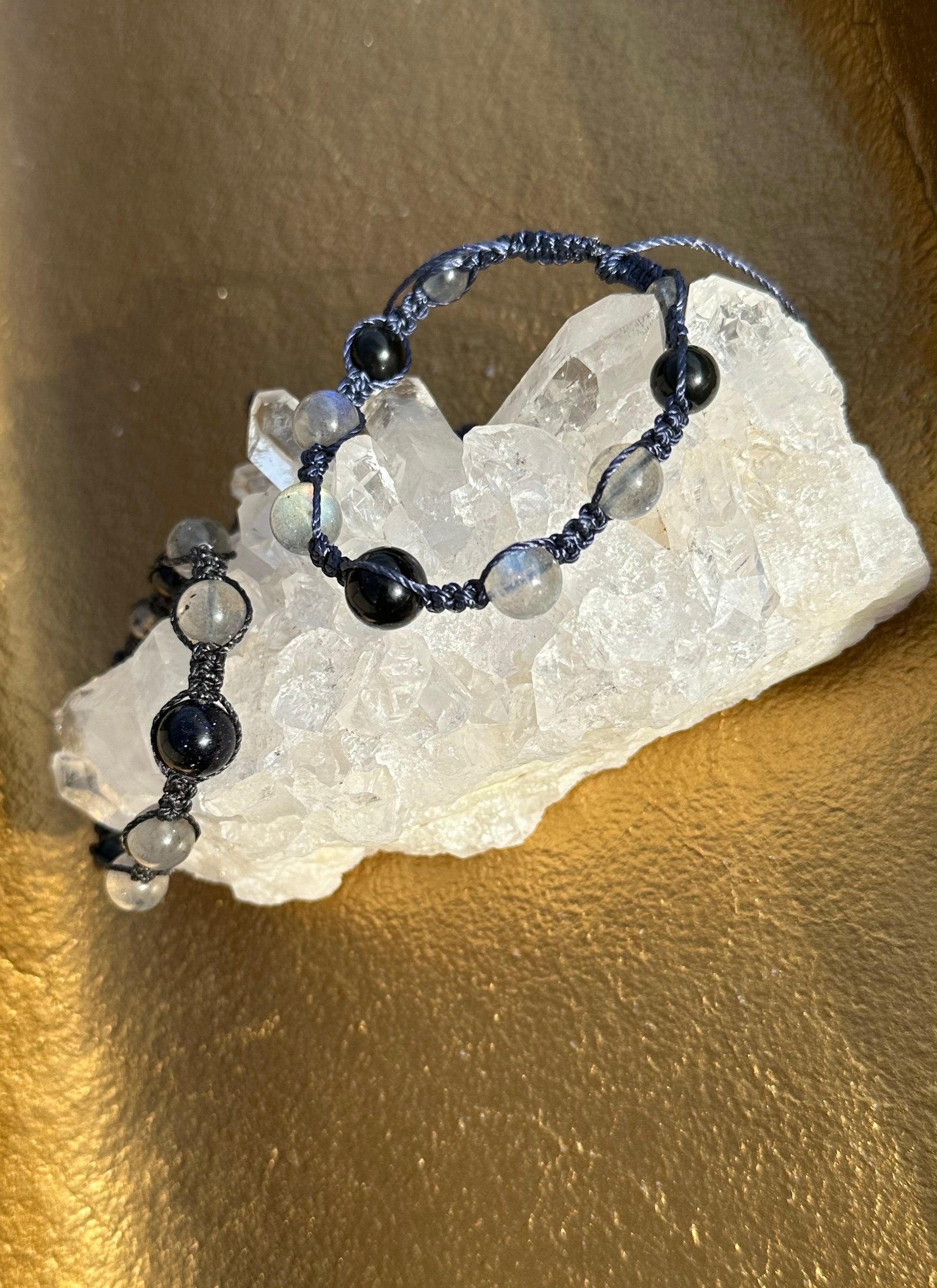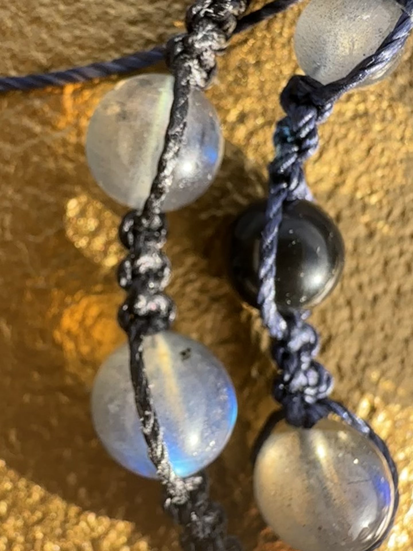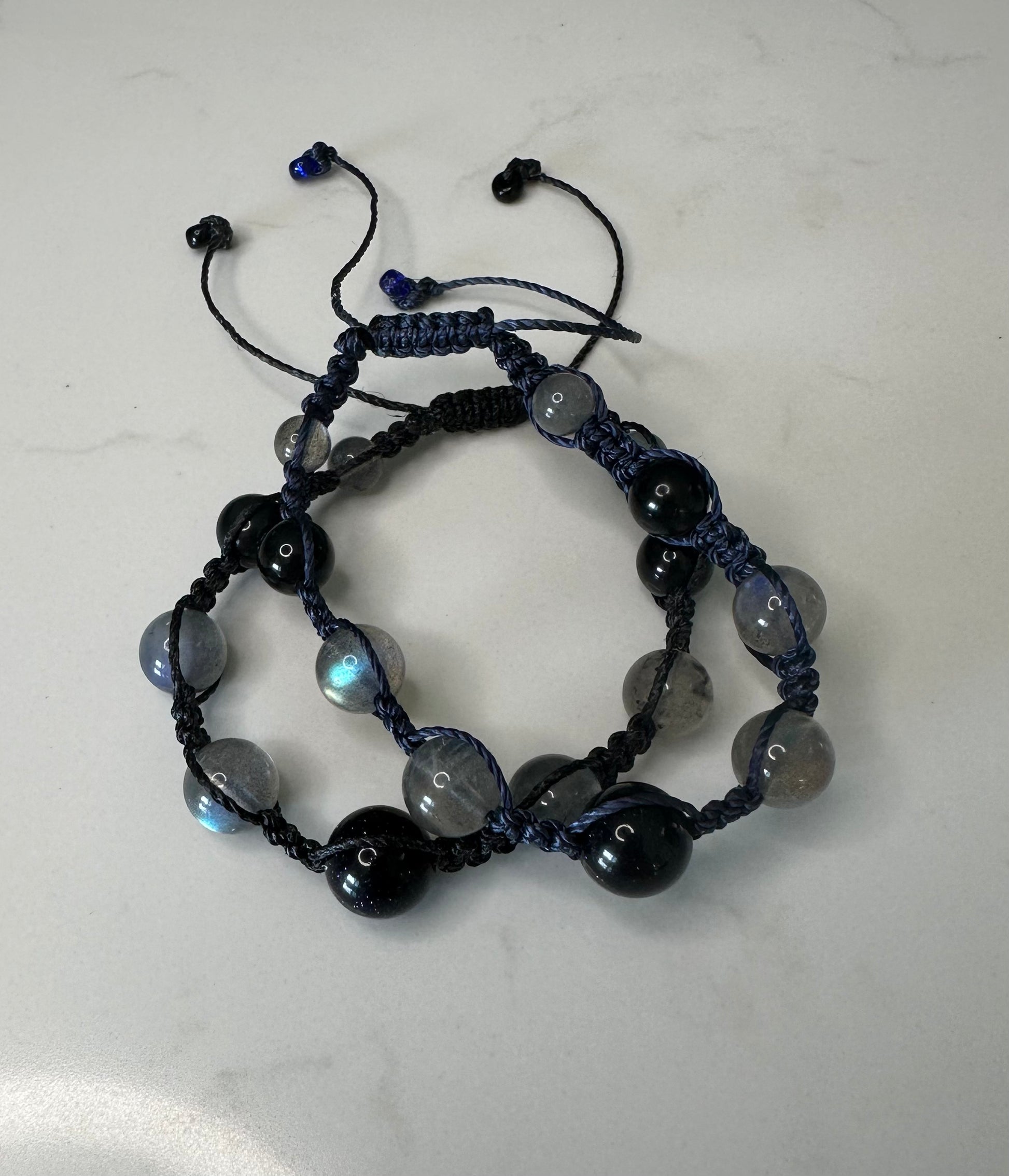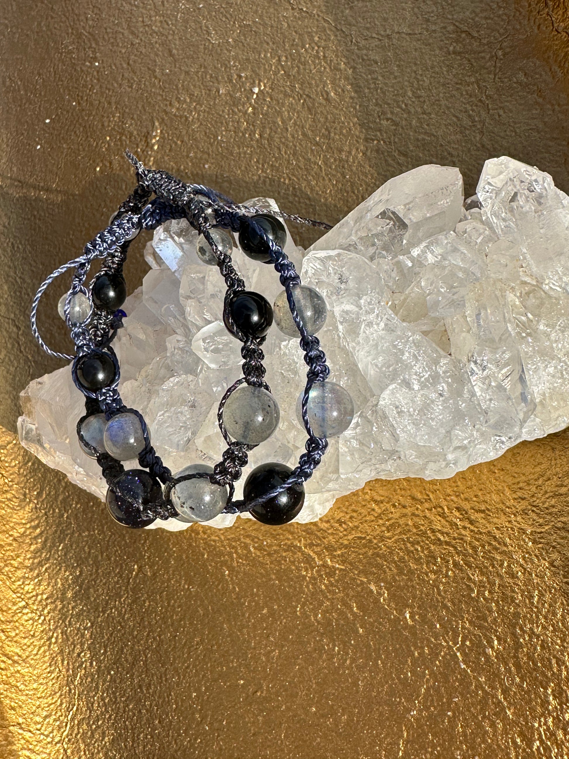 This listing includes a single bracelet handcrafted with the stunning colors of the northern lights. Each bracelet has been imbued with spiritual energy by a certified reiki master. This bracelet was crafted with Labradorite, Rainbow Obsidian, and Blue Goldstone.