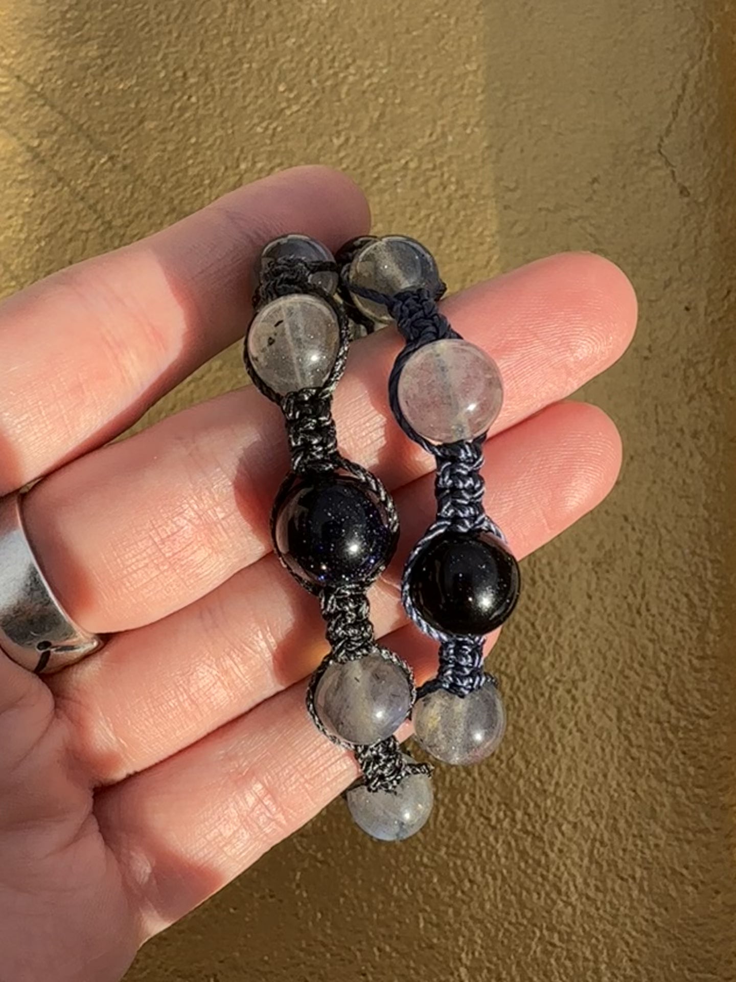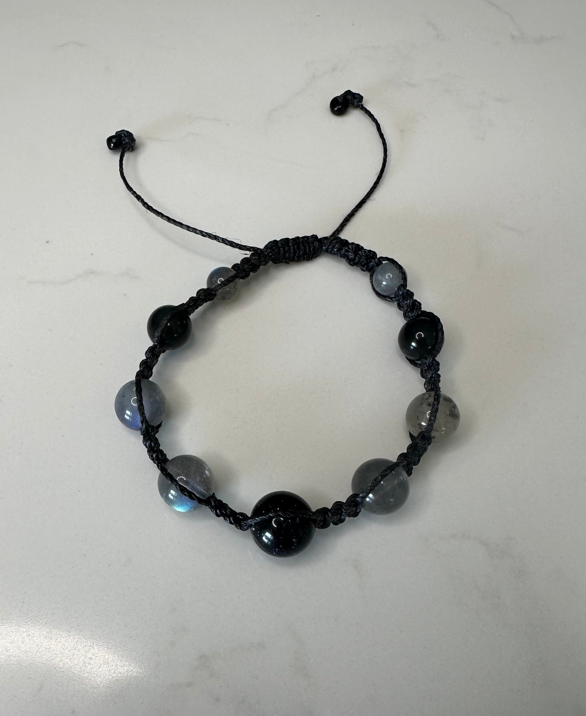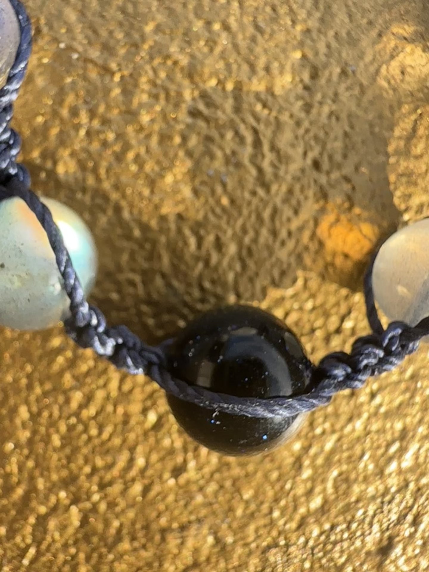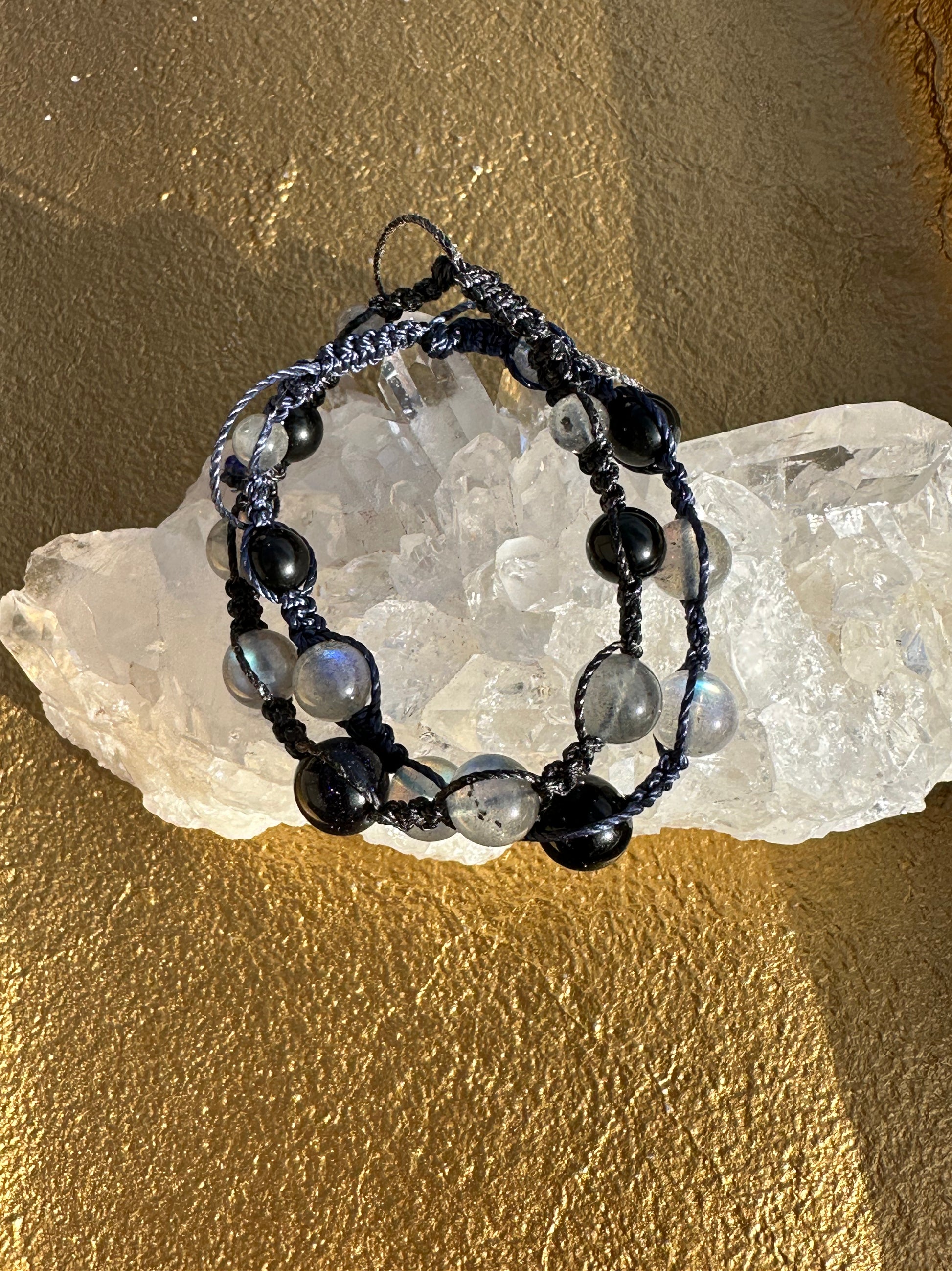 This listing includes a single bracelet handcrafted with the stunning colors of the northern lights. Each bracelet has been imbued with spiritual energy by a certified reiki master. This bracelet was crafted with Labradorite, Rainbow Obsidian, and Blue Goldstone.