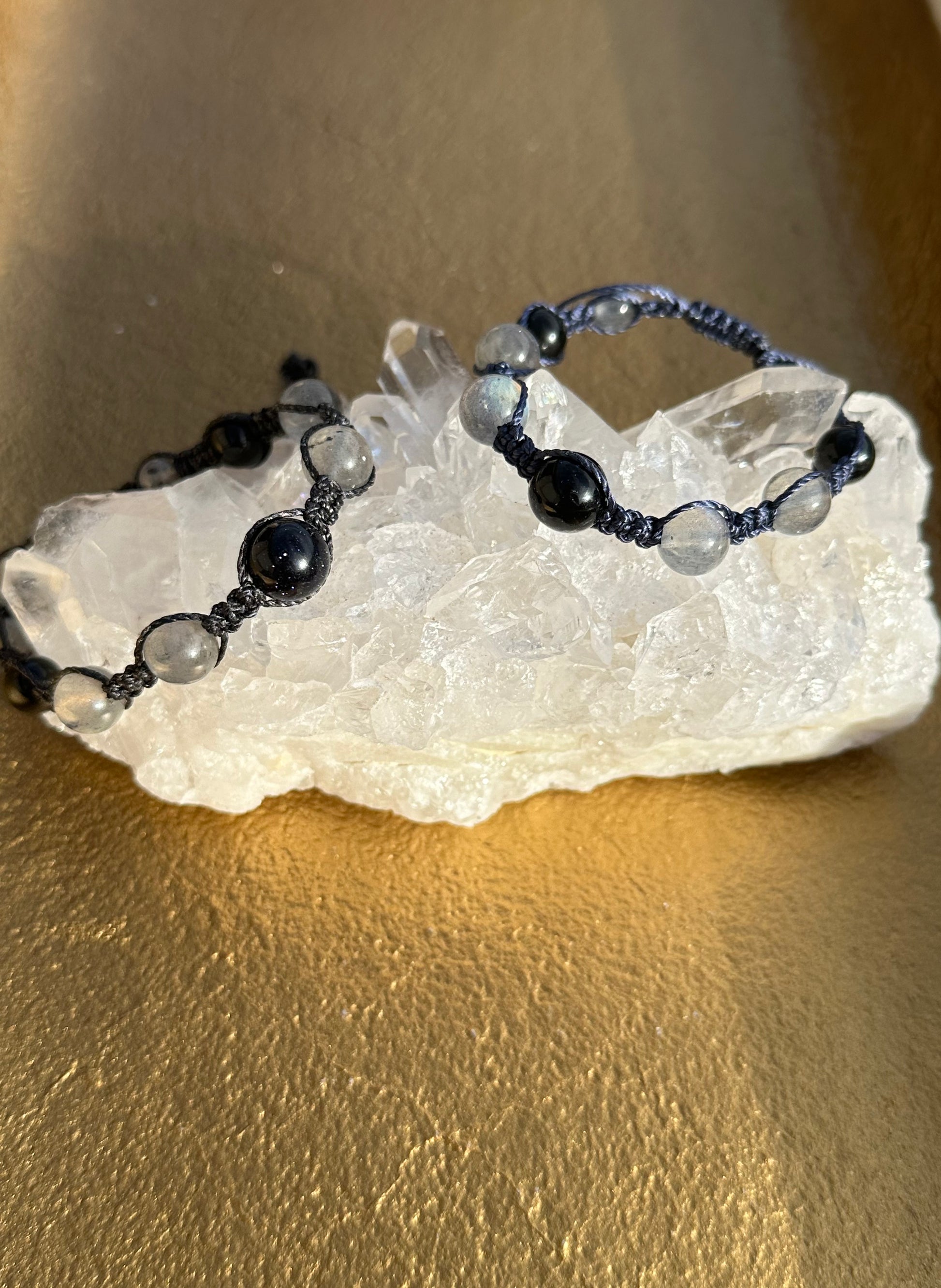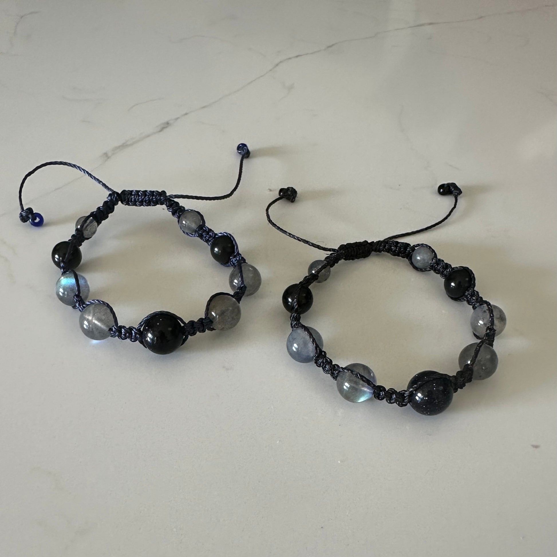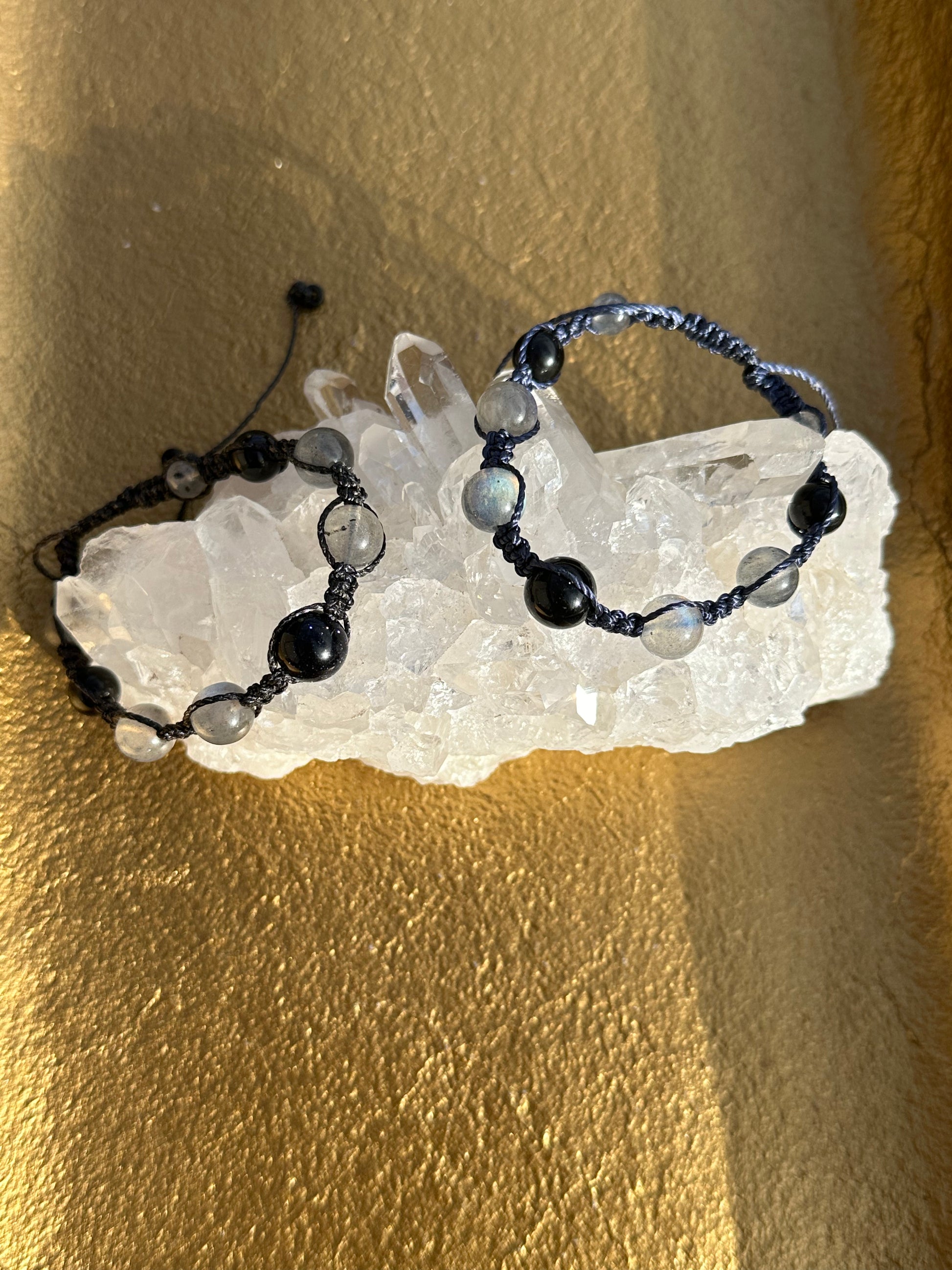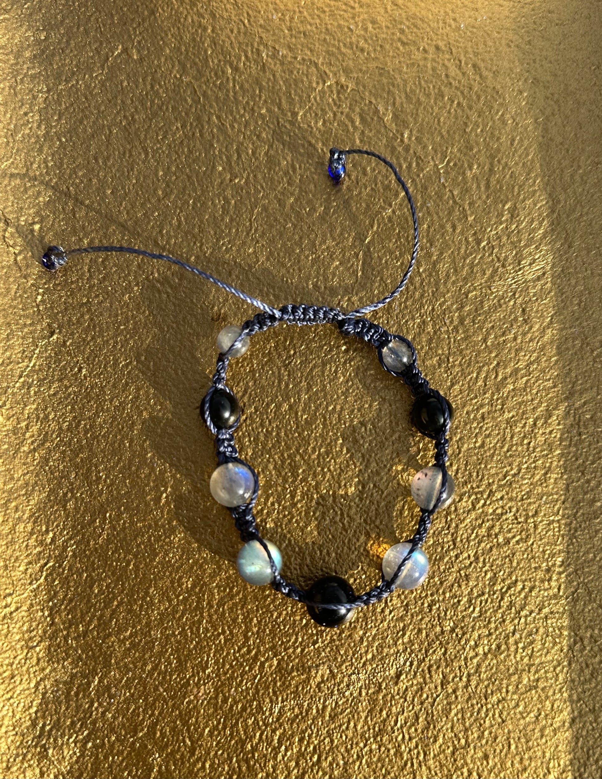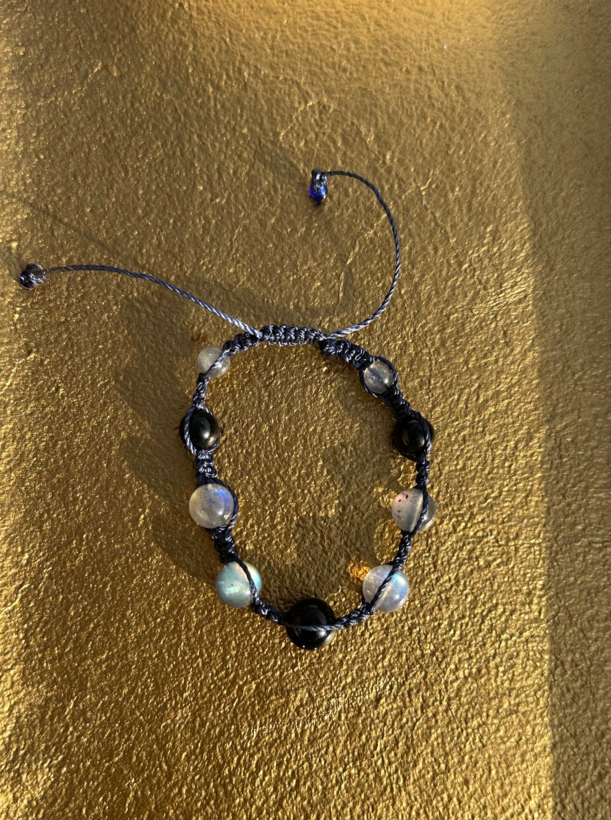 This listing includes a single bracelet handcrafted with the stunning colors of the northern lights. Each bracelet has been imbued with spiritual energy by a certified reiki master. This bracelet was crafted with Labradorite, Rainbow Obsidian, and Blue Goldstone.