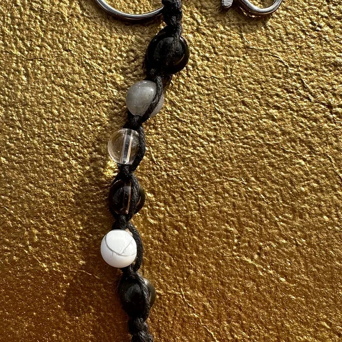 The Protection and Grounding Keychains are handmade and Reikied by a Certified Energy Healing and Reiki Master. Each stone has been mindfully selected to help with protection and grounding. These keychains are made with black Hemp, Black Onyx, Smoky Quartz, Clear Quartz, Howlite, and Rainbow Obisidan.