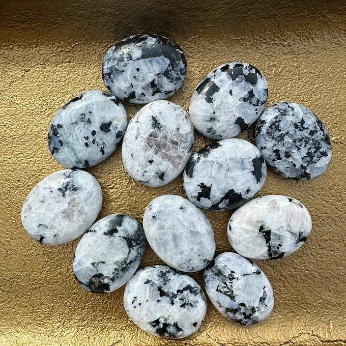 This listing is for one intuitivley selected Rainbow Moonstone Palm Stone. Each crystal found at Lala Lotus Co. has been Reikied by a certified Energy Healing and Reiki Master.