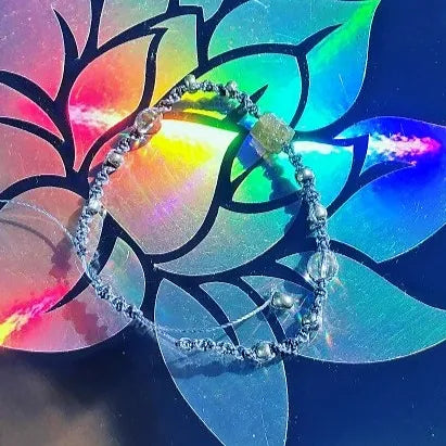 These beautiful bracelets are handmade with one raw labradorite stone and two clear quartz crystal beads. Made with a periwinkle colored cord and silver seed bead accents. The knot type is spiral knot and the bracelet is adjustable. 💙REMINDER💙 all of our crystal jewelry is reikied by a certified reiki master! Our jewelry is made to bring good vibes to everyone.