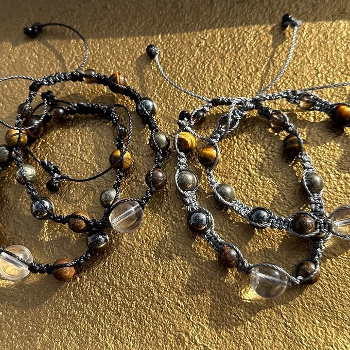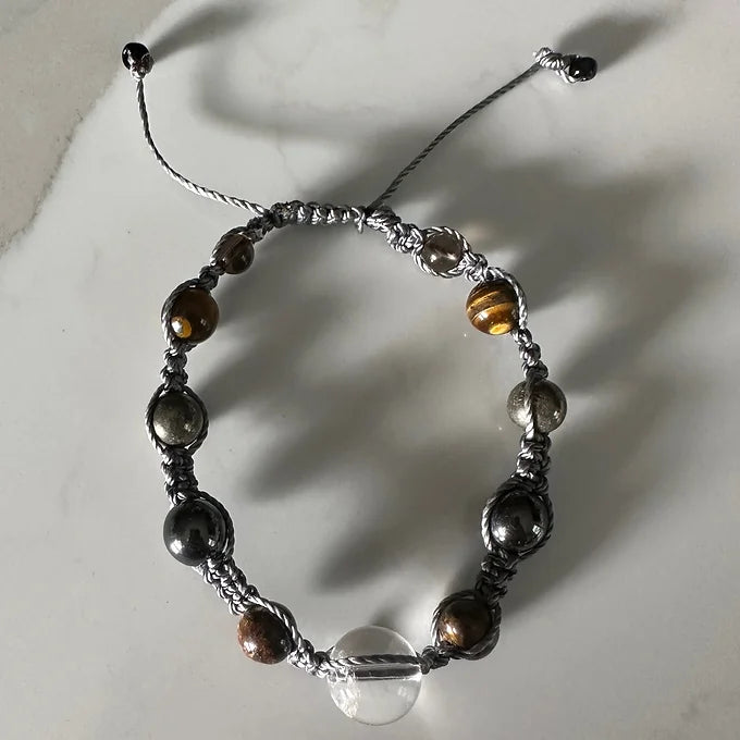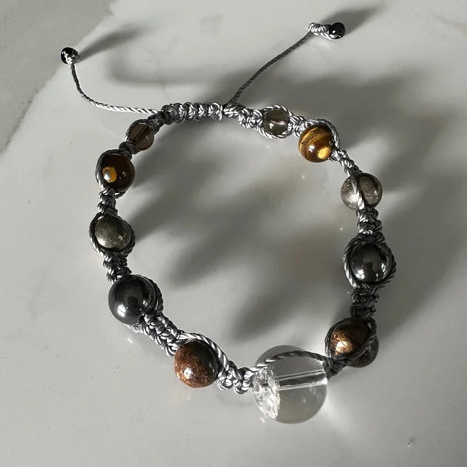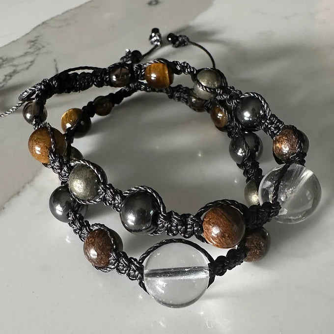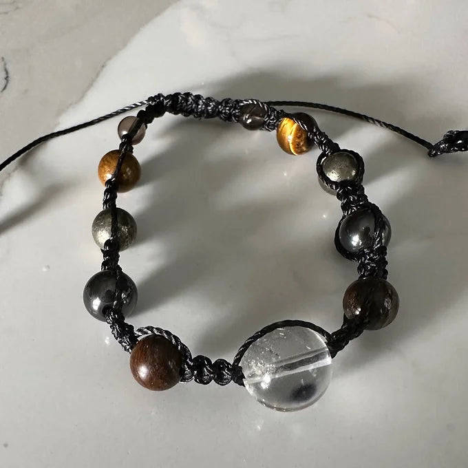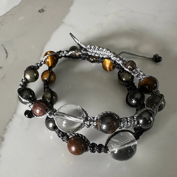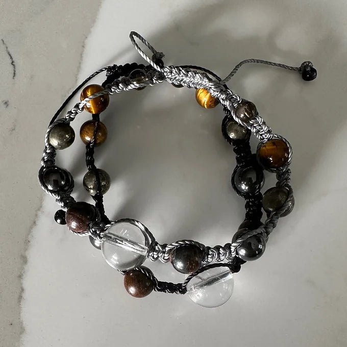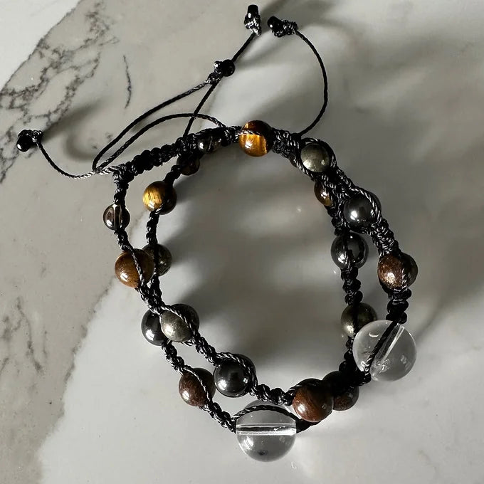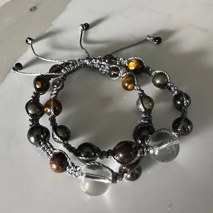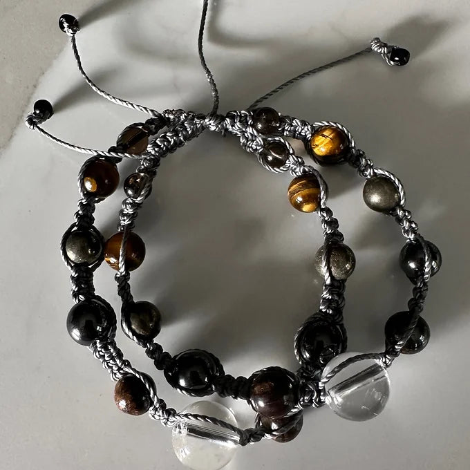Return to Sender Protection Bracelets are handmade by a certified Energy Healing and Reiki Master. These bracelets are designed to protect the wearer from all types of harm including negative energy that is intentionally or unintentionally sent to them. These pieces are made with Smoky Quartz, Tiger's Eye, Pyrite, Hematite, Bronzite, and Clear Quartz.