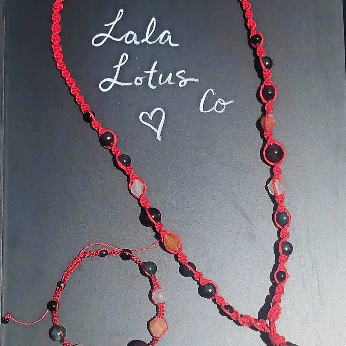 The root chakra jewelry set is handmade with grade A or higher crystals. These beautiful pieces have been infused with good energy and reikied by certified masters. This set is designed to balance and heal the root chakra. The bracelet is adjustable. The necklace is 20-23inches.