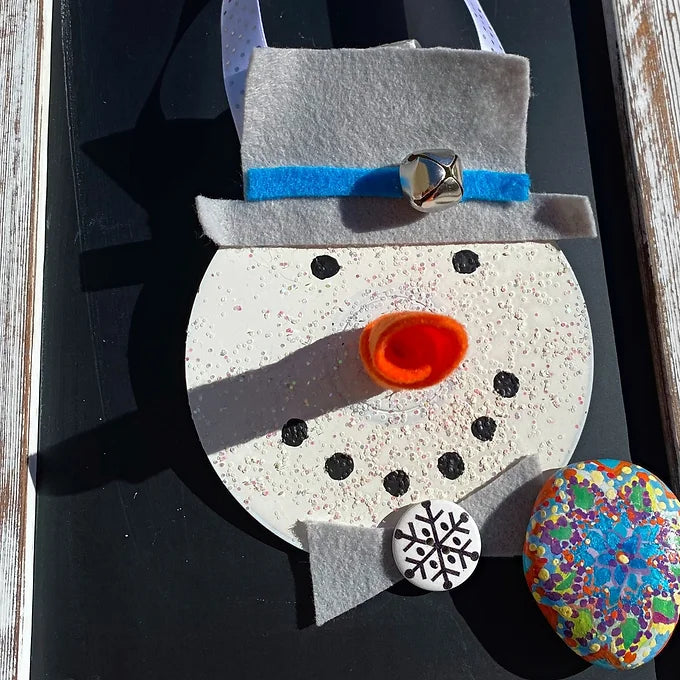 This Snowman Ornament is designed for hanging on a tree, door, or hook and each one is lovingly handmade with recycled materials by local Arizona artists. The regular-sized ornament measures about 7 inches in height, while the mini version measures approximately 5 inches. If you have any questions or would like to place a custom order, please contact us at Lalalotusco@gmail.com.