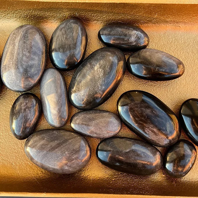 This listing is for 1 intuitively selected Silver Sheen Obsidian palm stone. You can select between large or small palm stones. Each Crystal has been reikied by a certified reiki master.