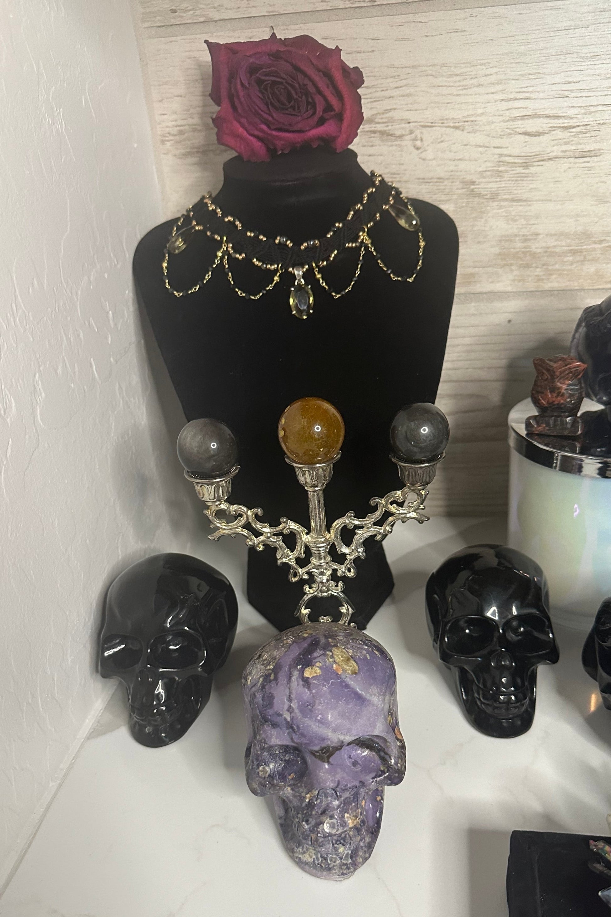 Smoky Citrine-The Smoky Citrine Choker is a stunning fusion of Smoky Quartz and Citrine. With its radiant citrine properties and the protective energy of Smoky Quartz, this unique gemstone brings abundance, success, grounding, and security to any space. It is also ideal for promoting personal growth and transformation, while working in harmony with the crown chakra. In addition, Smoky Citrine aids in emotional balance and enhances problem-solving skills.