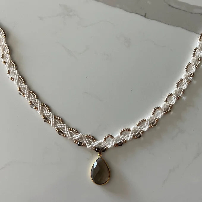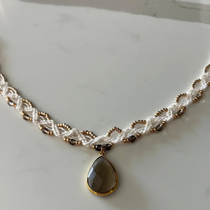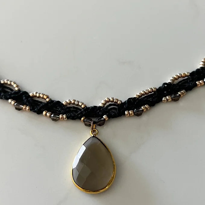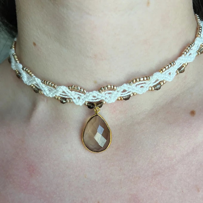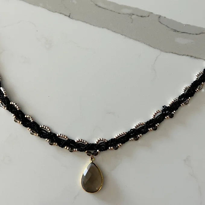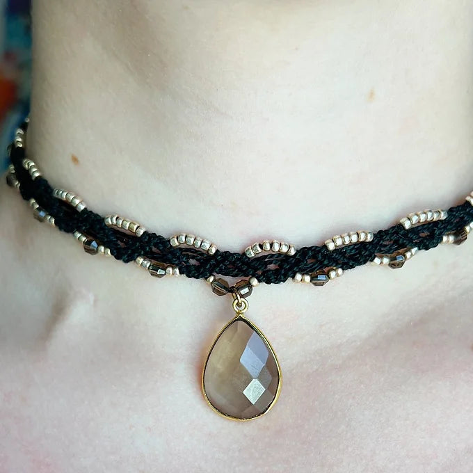These Smoky Quartz chokers are handmade by Lauren and have been reiki by a certified reiki master. Made with over 300 beads, these necklaces were inspired by Lauren’s belly dance background. Each necklace is made with intention, these necklaces contain Smoky Quartz, a wonderful healing and grounding stone. These chokers are lightweight, comfortable, and beautiful. Each necklace is 13 inches long. You can customize your necklace by: