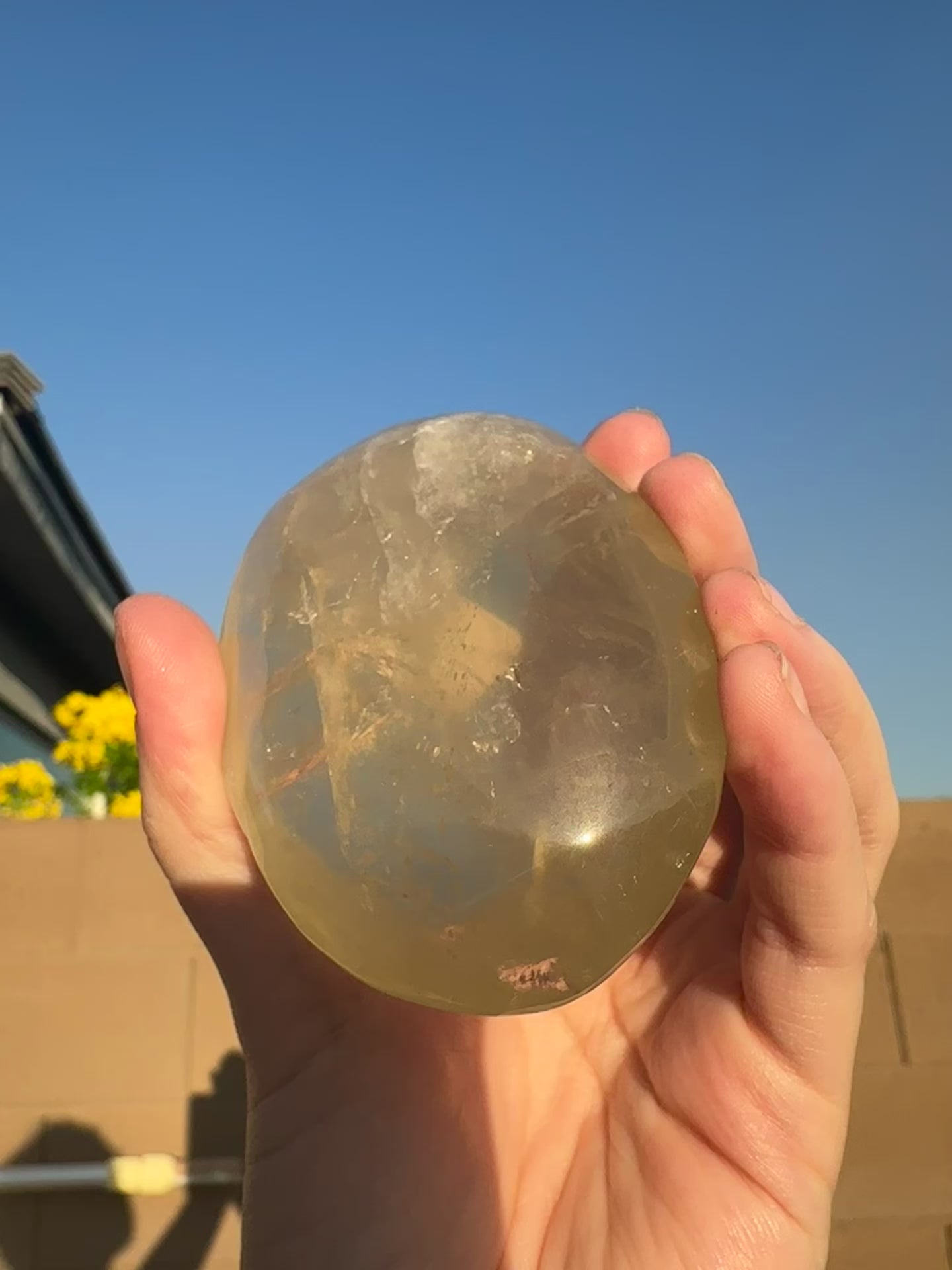 Smoky Citrine-The stunning Starry Citrine Palm Stones combine the bright energy of Citrine with the grounding and protective properties of Smoky Quartz. These stones are ideal for attracting prosperity, success, and protection in an office setting. Additionally, Starry Citrine is linked to the crown chakra and can aid in problem solving and emotional balancing. Use this powerful stone to move forward in life and leave behind unproductive situations.
