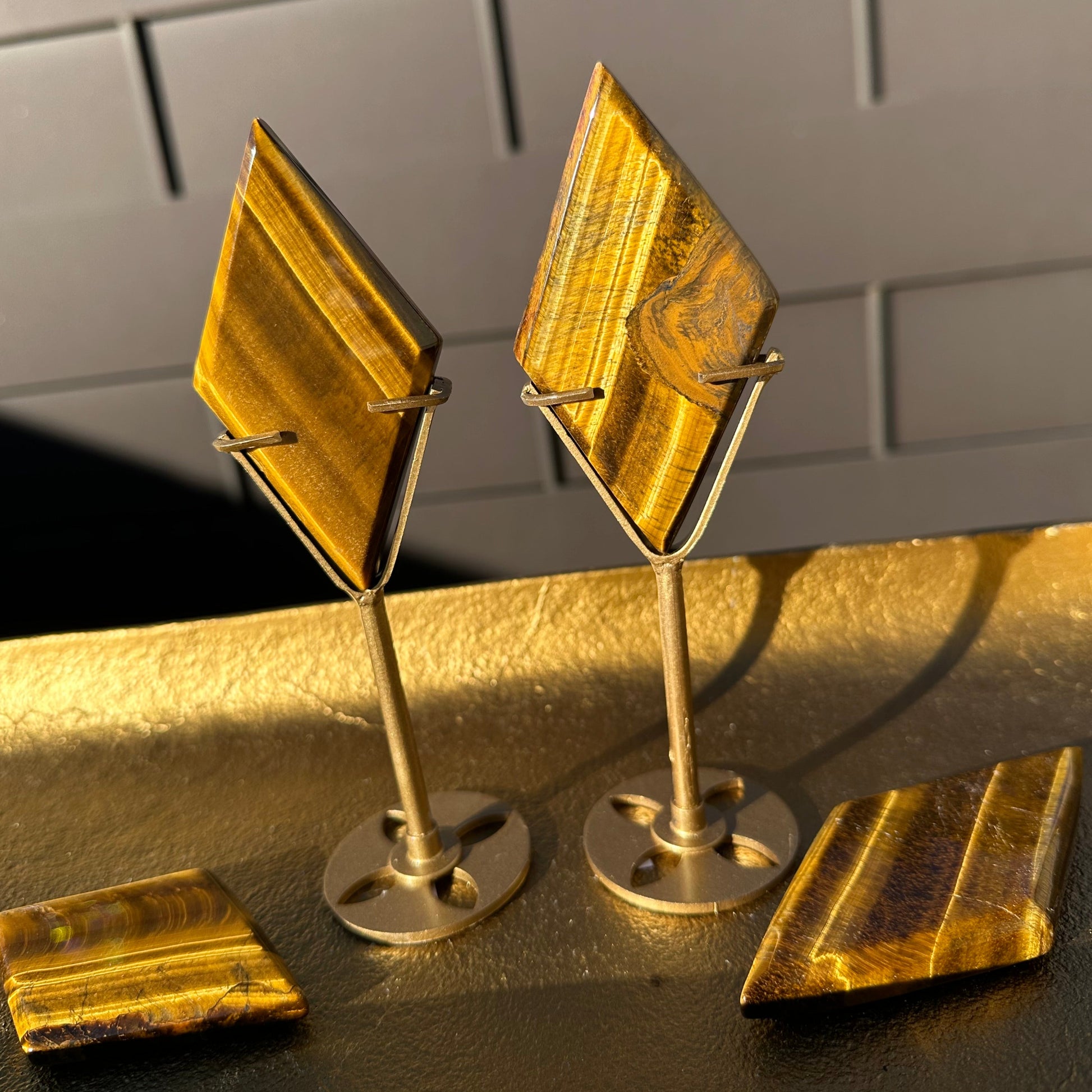 This listing is for 1 intuitively selected Tiger's Eye diamond with a stand. Each of these crystals has been blessed by a certified energy healing and Reiki master.